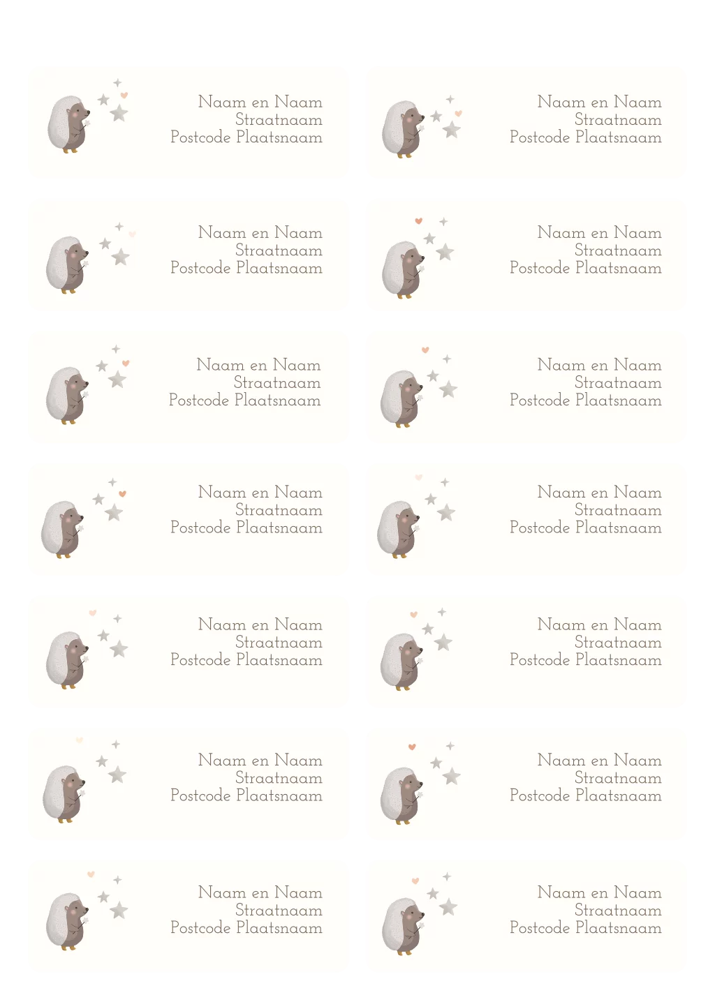 Adresstickers passend bij geboortekaartje egeltje met een toverstaf
