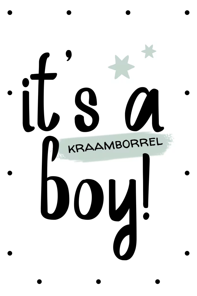 Kraamborrel uitnodiging zwart wit met stipjes