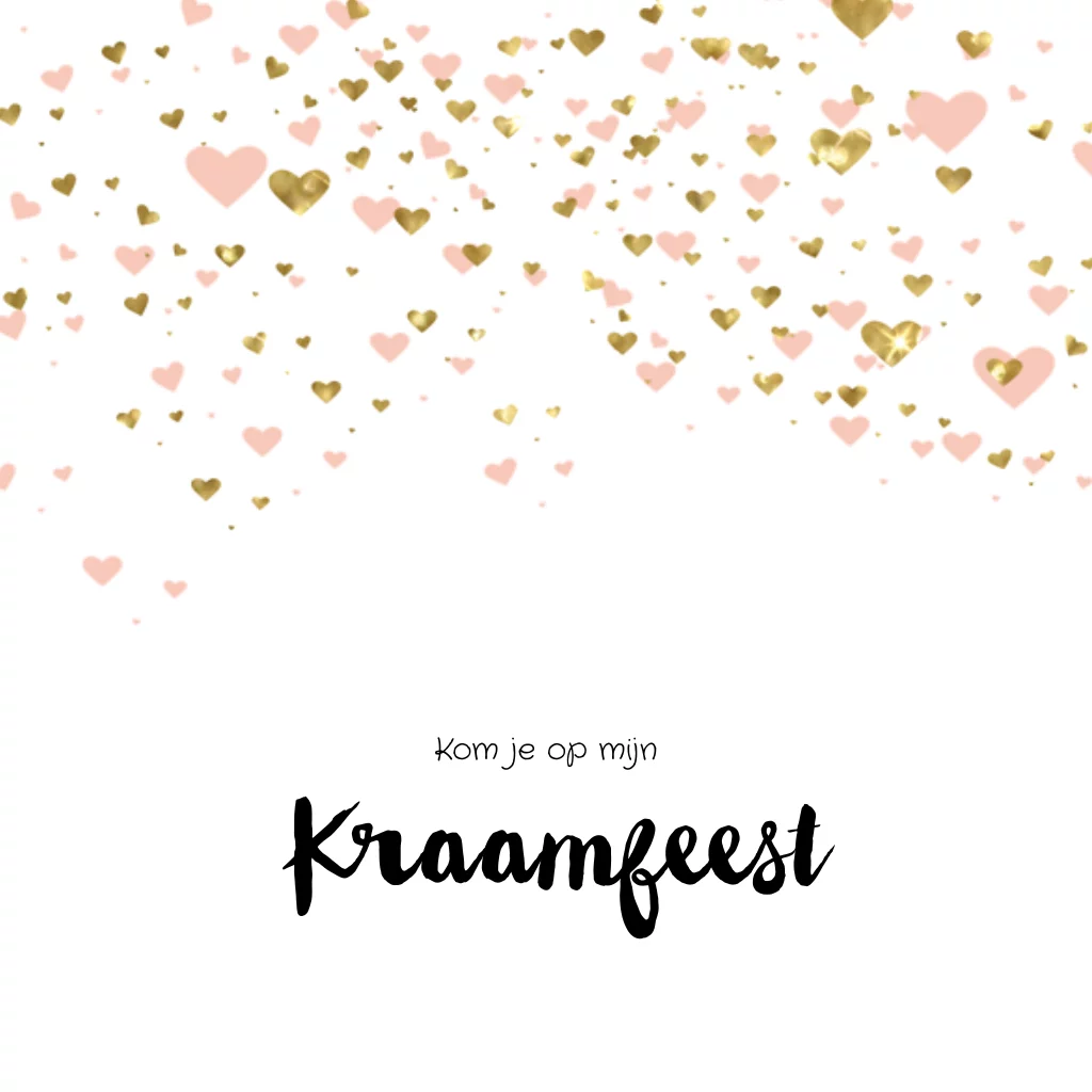Kraamfeest uitnodiging roze en goudlook hartjes
