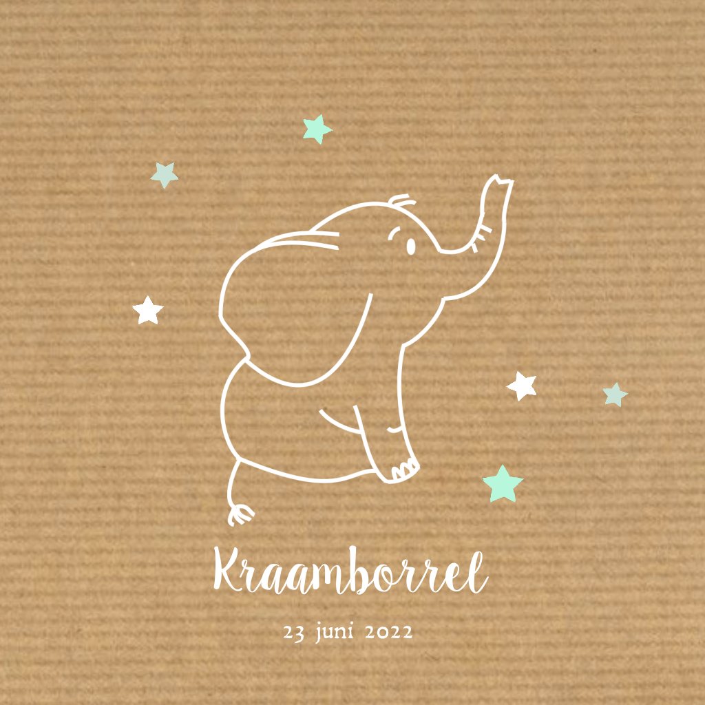 Uitnodiging kraamborrel met olifantje en sterren. (3150)