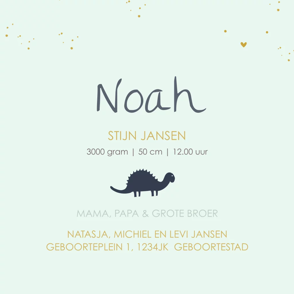 Geboortekaartje baby jongen dino draak donkergroen goudfolie