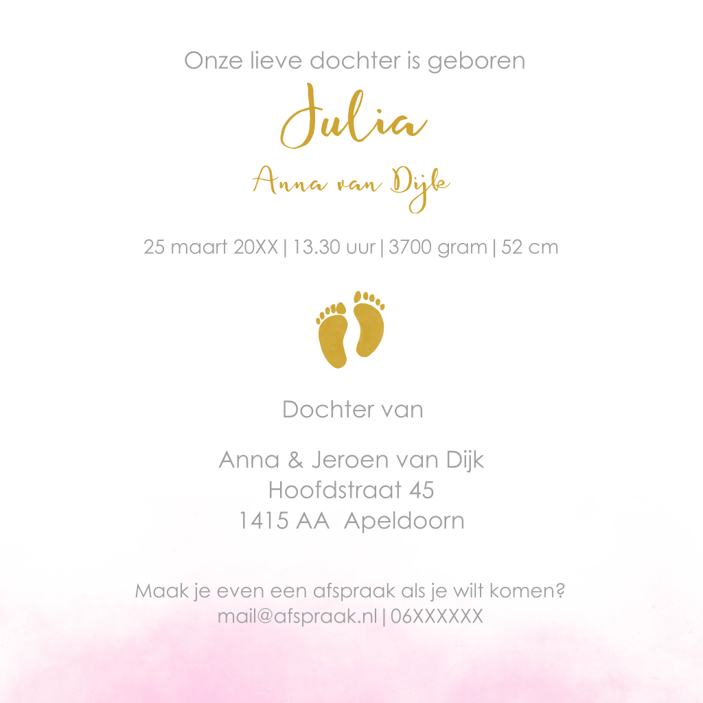 Geboortekaartje voor een meisje met babyvoetjes in echte folie. (3481)