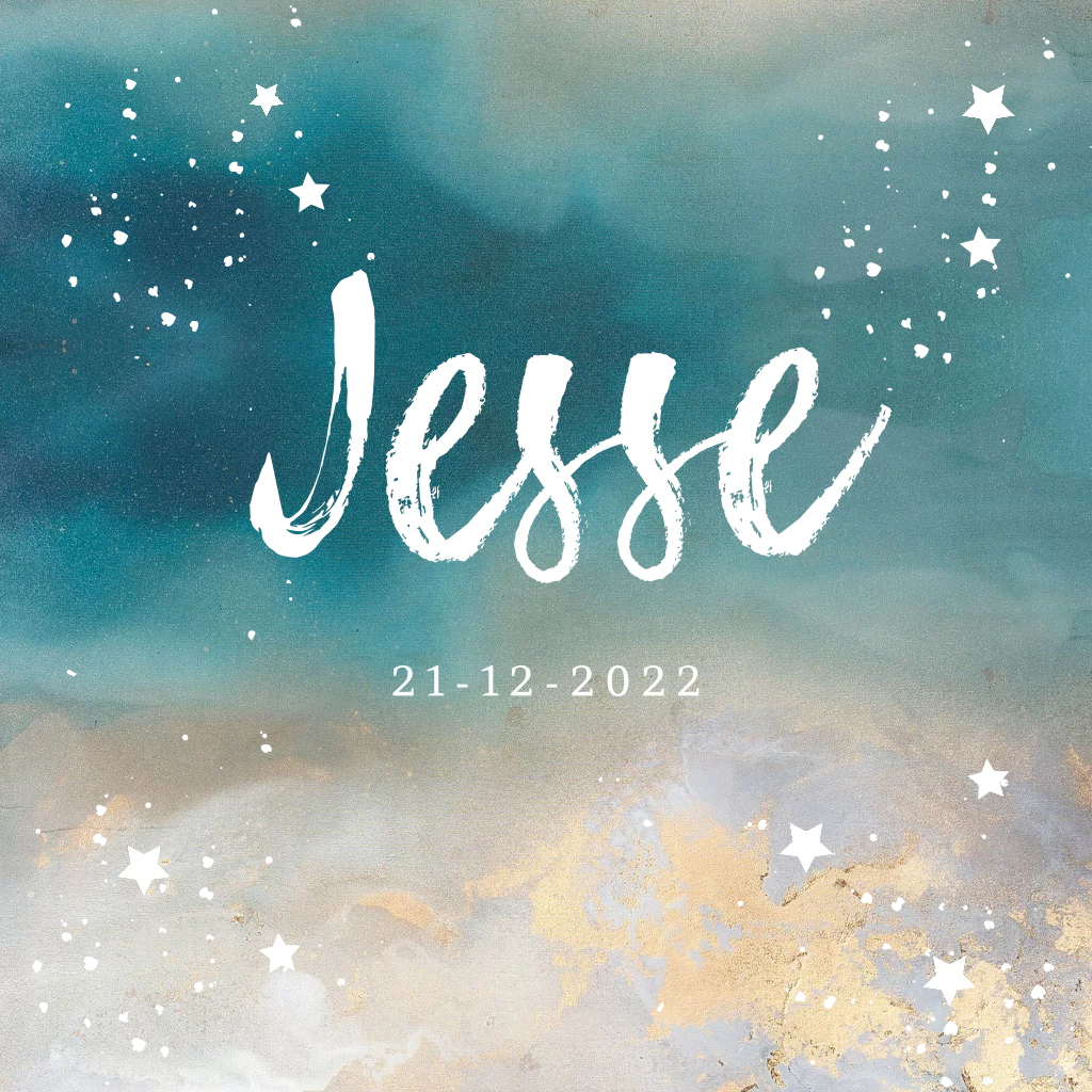 Geboortekaartje voor een jongen met echt goudfolie druk en aquarel achtergrond. (3471) De kleur van de foliedruk is in de kaartenmaker aan te passen.