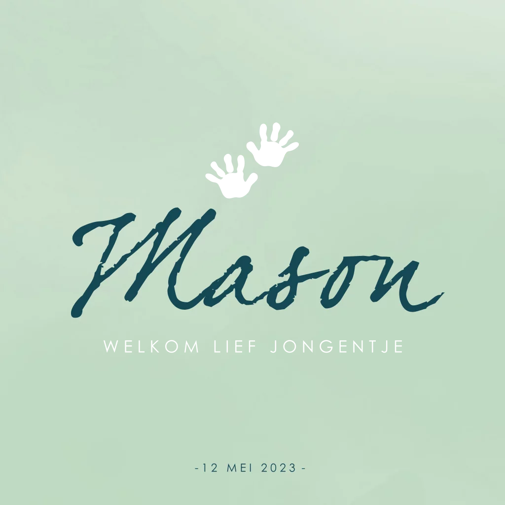 Geboortekaartje baby jongen handjes goudfolie. (3447) De kleur van de foliedruk is in de kaartenmaker aan te passen.