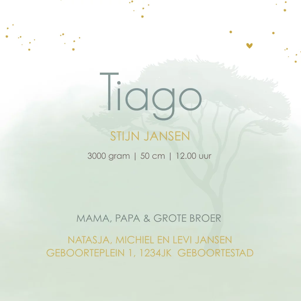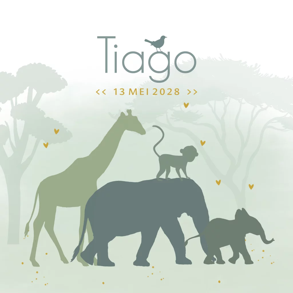 Geboortekaartje baby jongen jungle dieren en bomen olifant (4108)