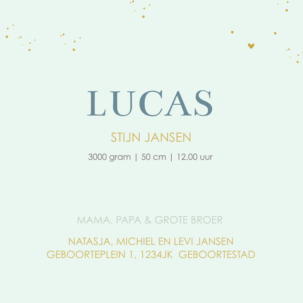 Geboortekaartje baby jongen stipjes goudfolie. (3460)