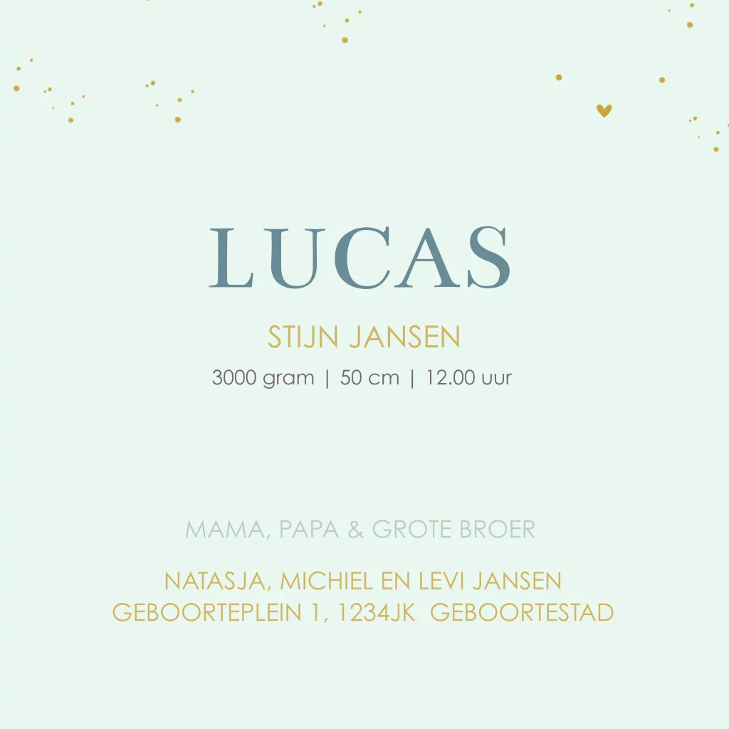 Geboortekaartje baby jongen takje goudfolie. (3464)