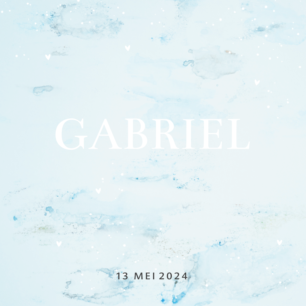 Geboortekaartje baby jongen waterverf zilverfolie. (3469)