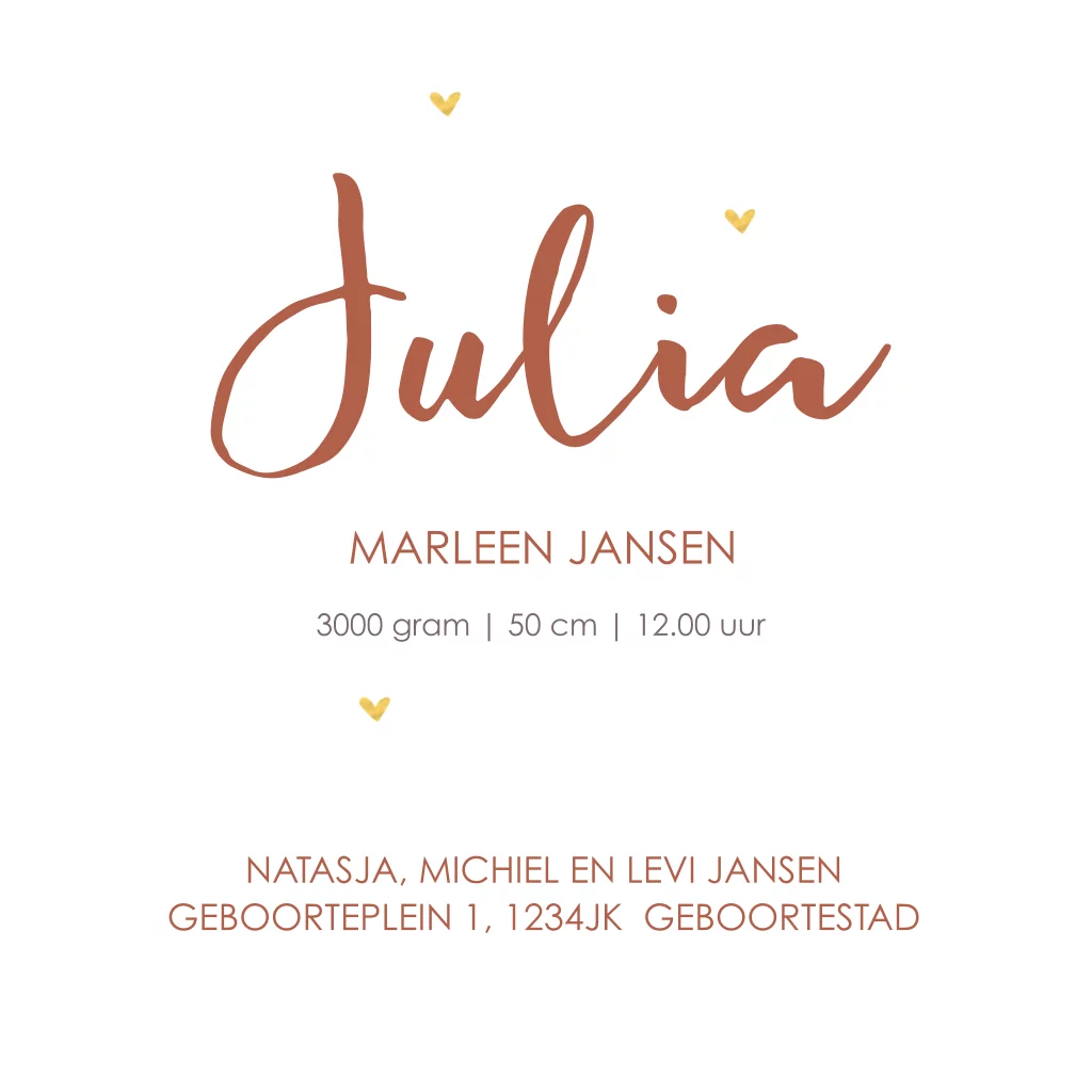 Geboortekaartje baby meisje waterverf hoogglans koper lak
