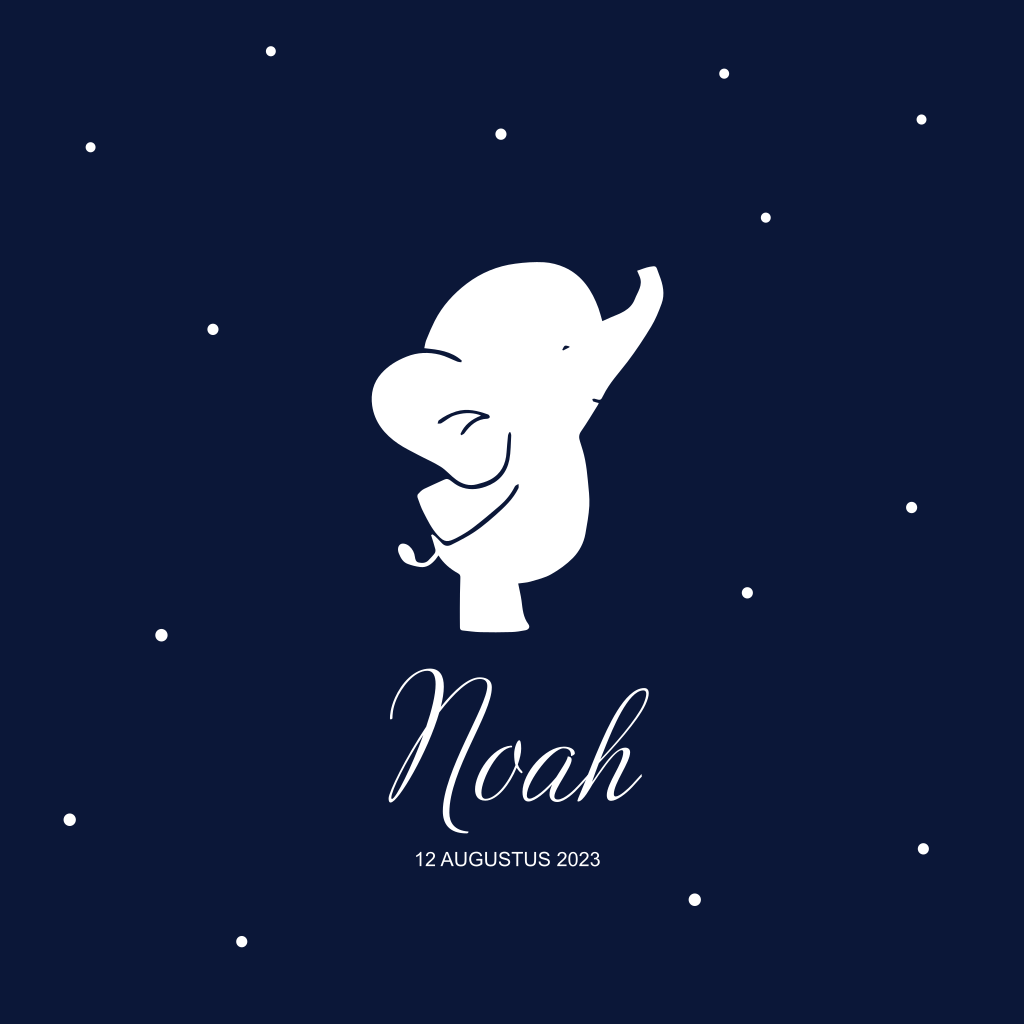 Geboortekaartje donkerblauw jongen olifantje goudfolie