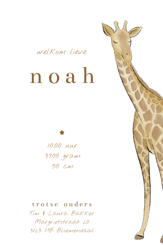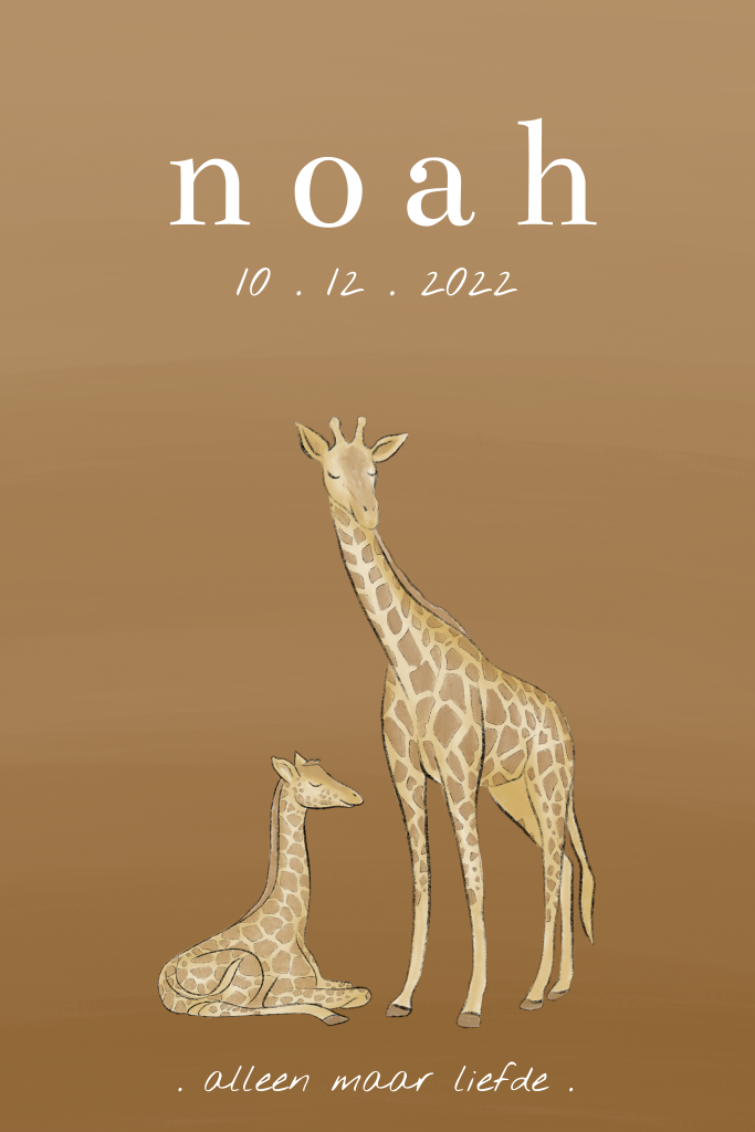 Geboortekaartje giraf op een warme bruine achtergrond met foliedruk