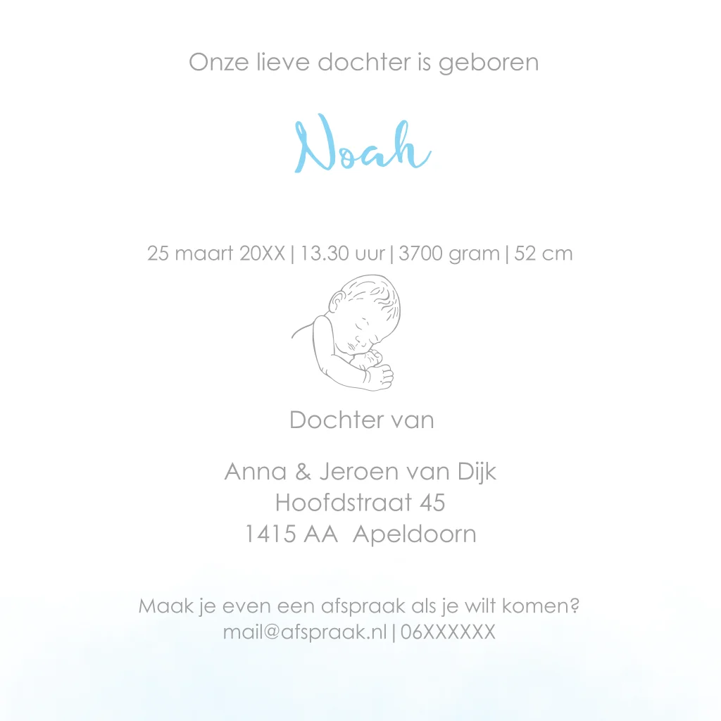 Geboortekaartje jongen met een lijntekening van baby en echt foliedruk
