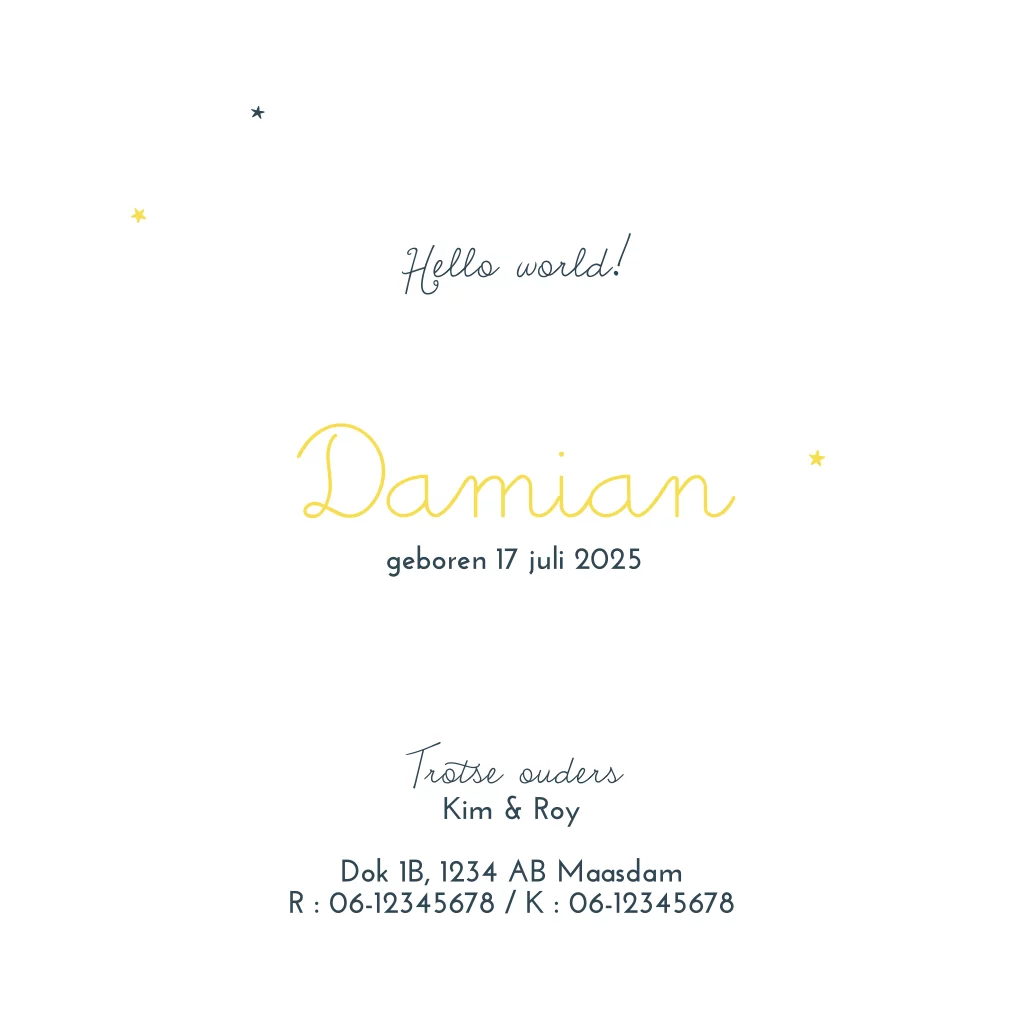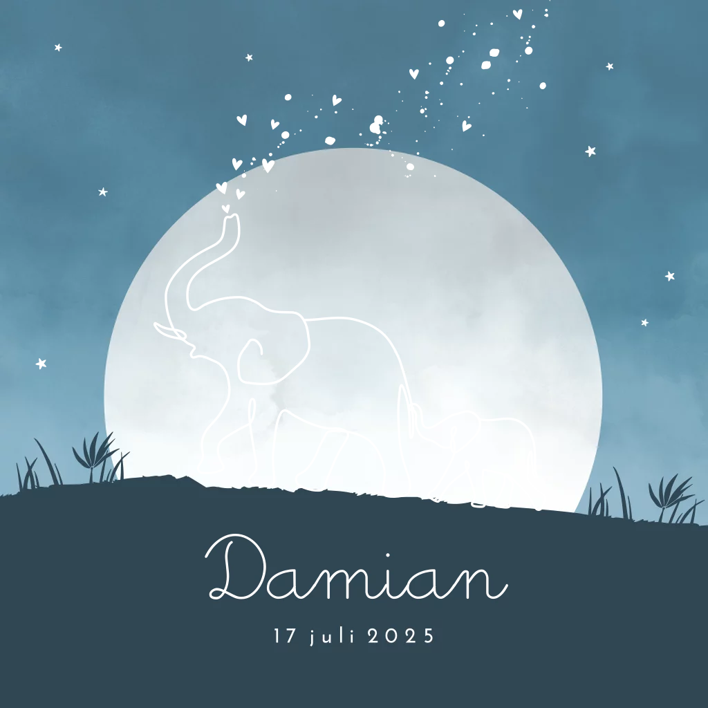 Geboortekaartje voor een jongen met goudfolie, olifantjes en de maan. (3653)