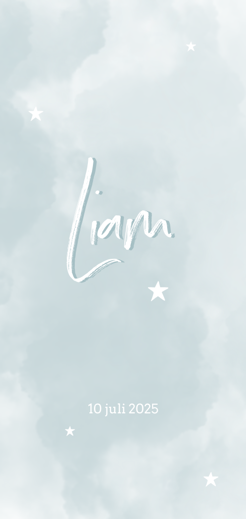 Geboortekaartje jongen zilverfolie sterren en blauw aquarel