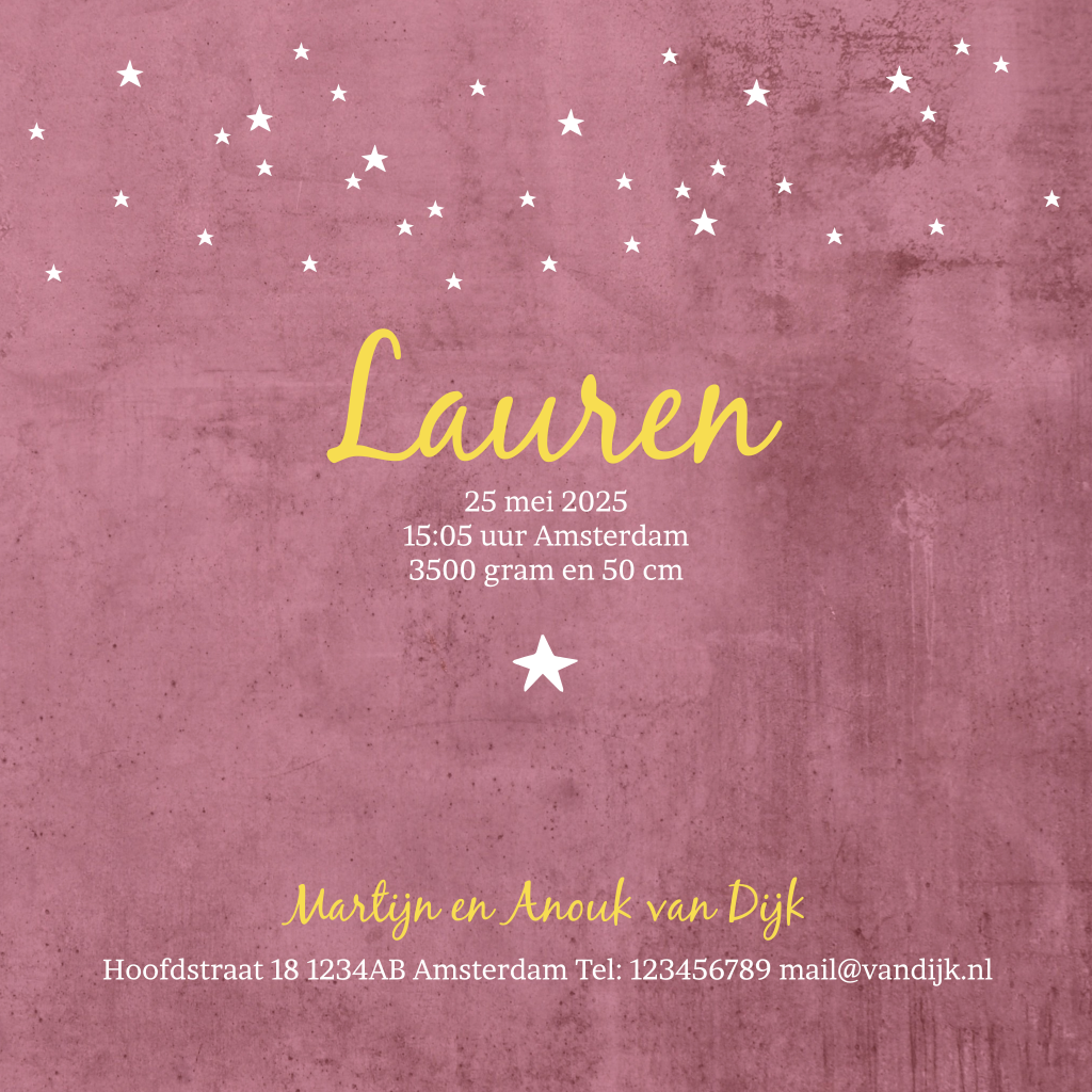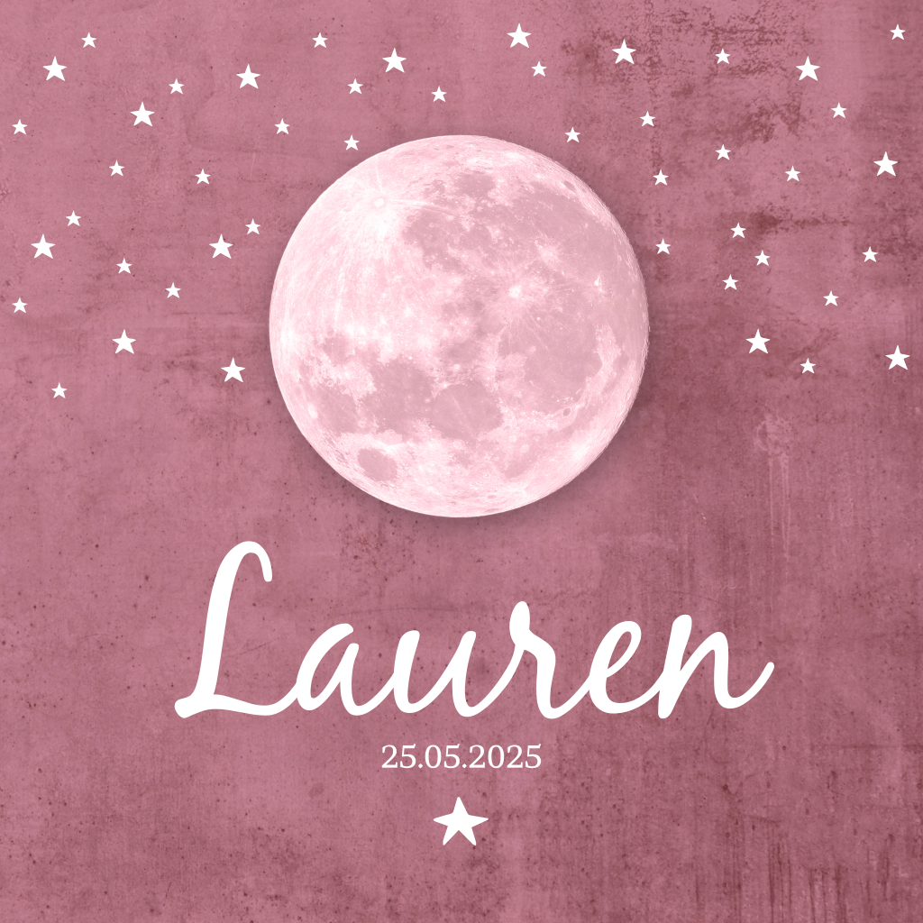 Een hip geboortekaartje met maan, sterren en goudfolie voor een meisje. Pas zelf de teksten aan. (4020)