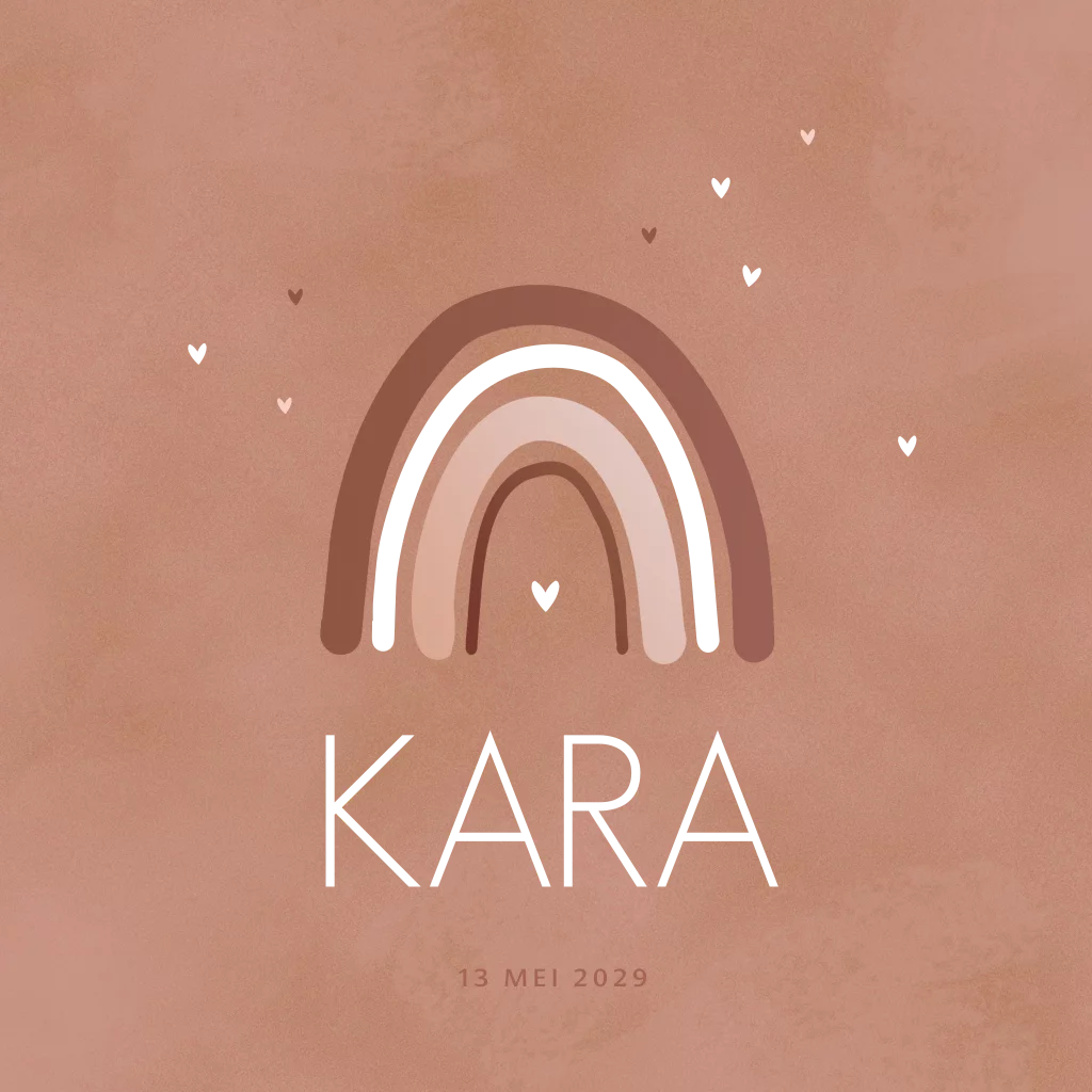 Geboortekaartje meisje regenboog terra kleur warm rose folie. (3983)