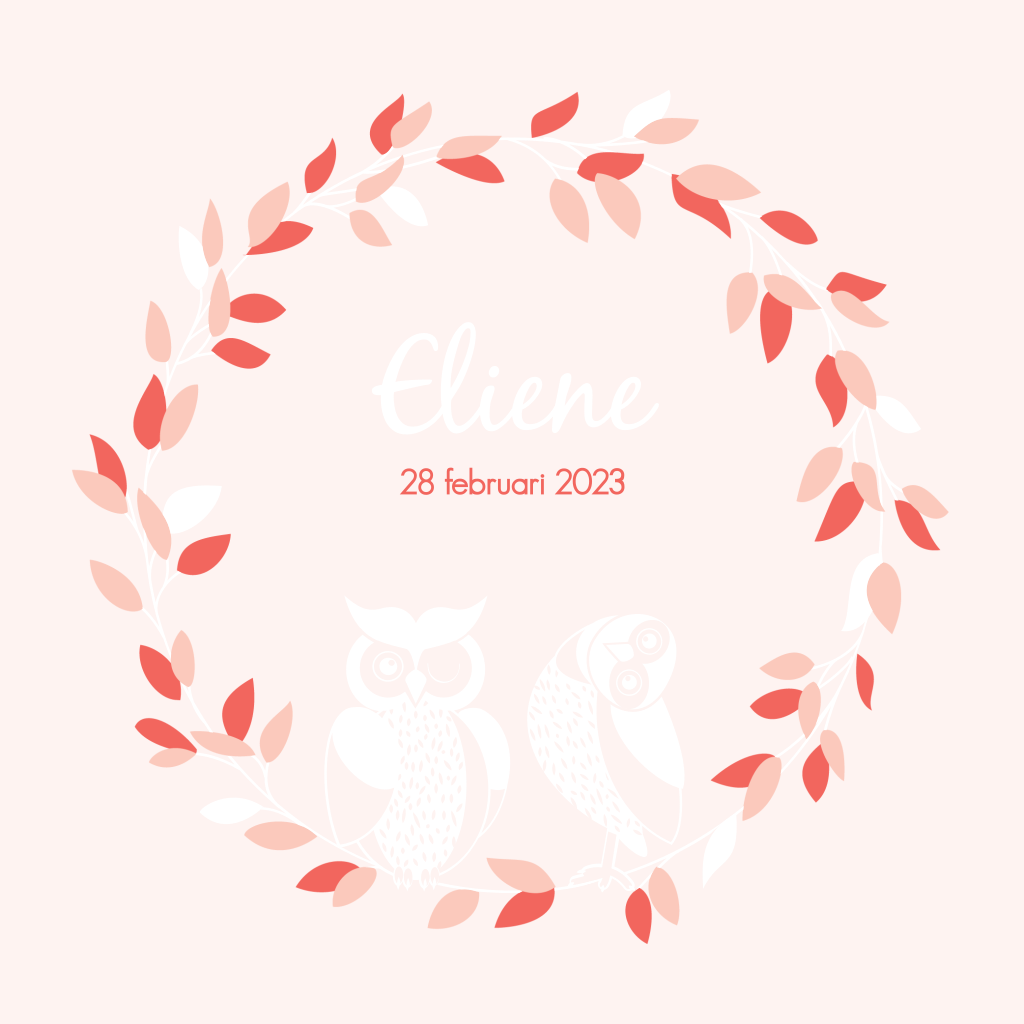 Lief geboortekaartje voor een meisje met goudfolie en uiltjes. (3598)