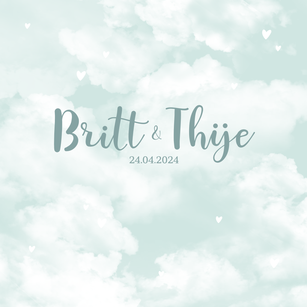 Geboortekaartje wolken hartjes goudfolie tweeling