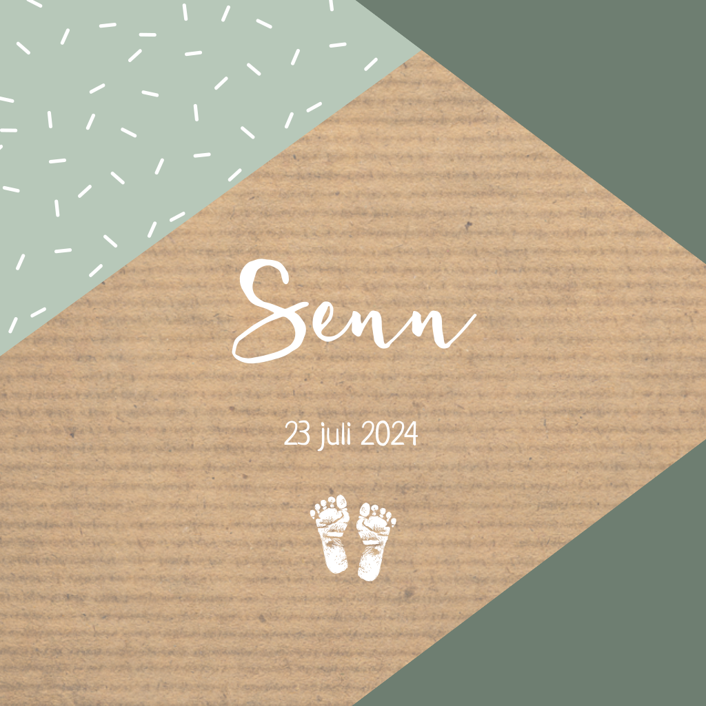 Hip geometrisch geboortekaartje jongen met kraft karton look en foliedruk confetti en voetjes. (3581)