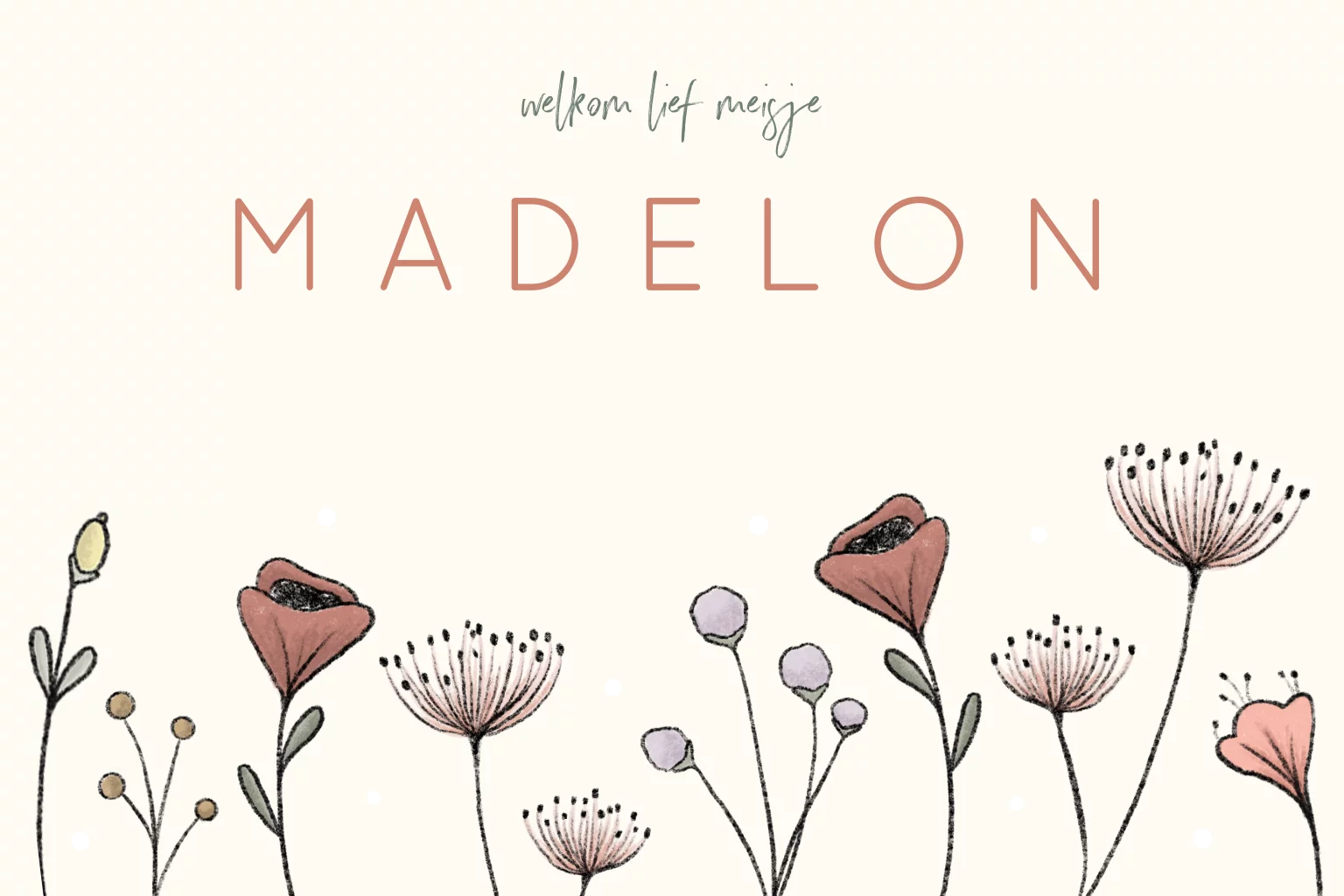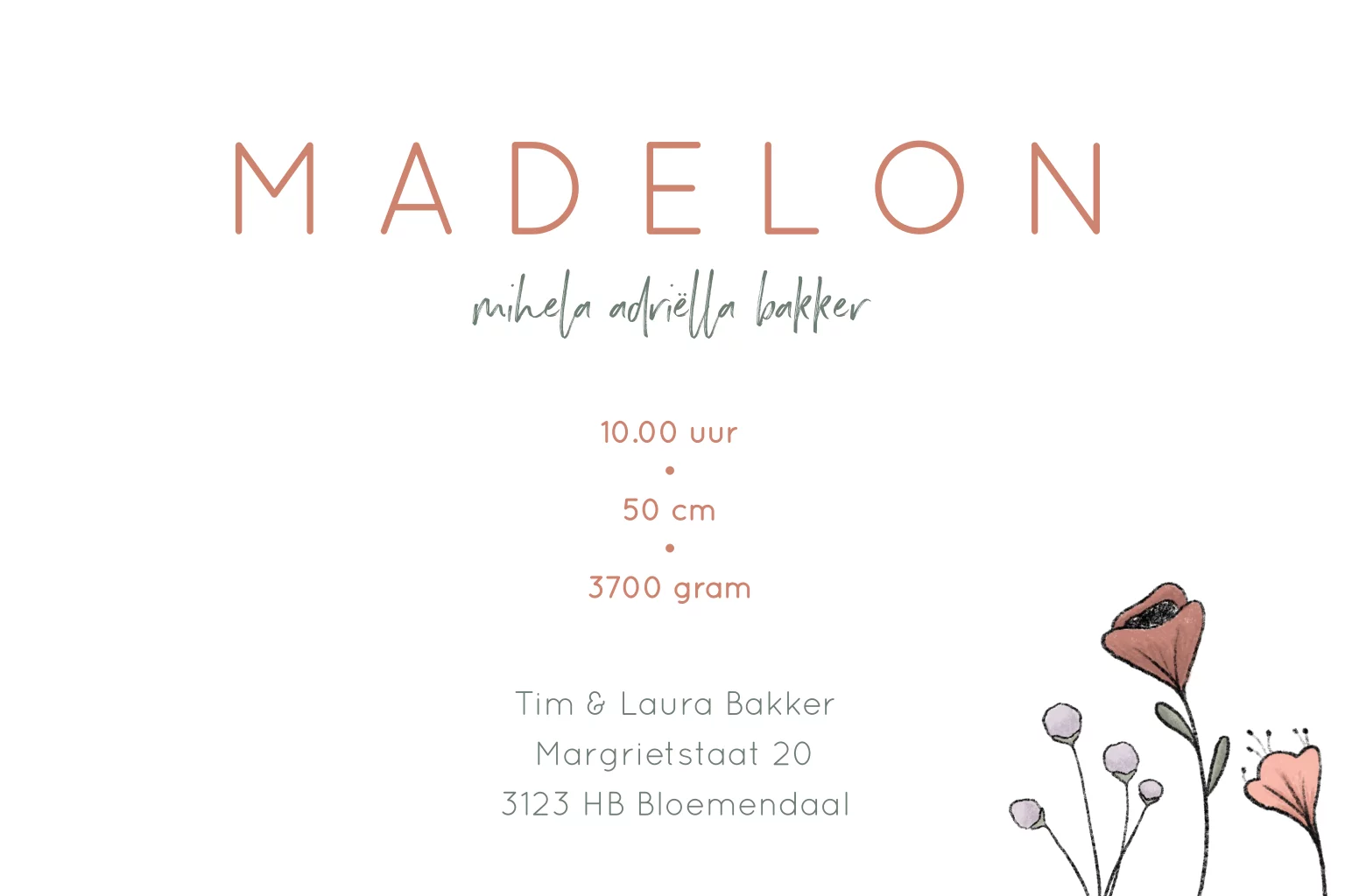 Modern en hip geboortekaartje met droogbloemen en foliedruk. (4040)