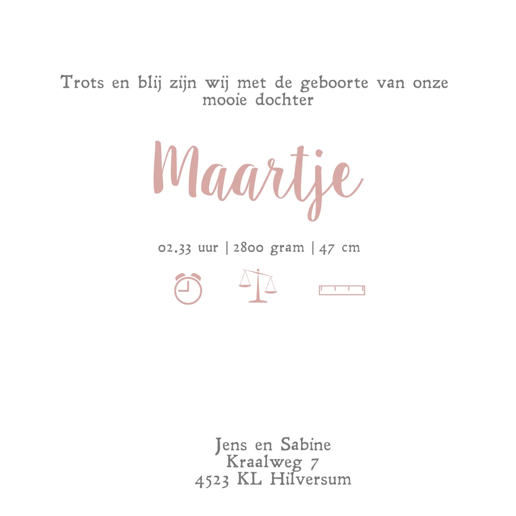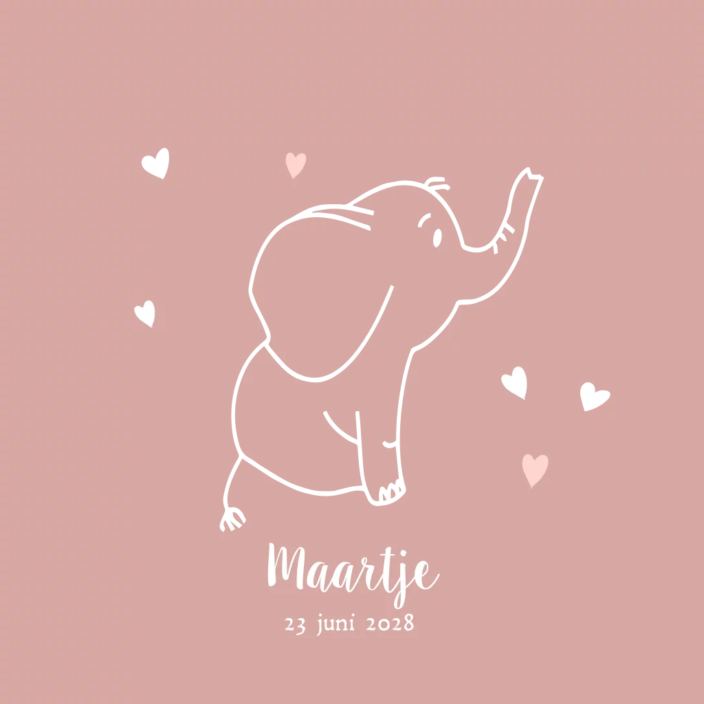 Lief geboortekaartje voor een meisje met olifantje en zilver folie druk. (3516)
