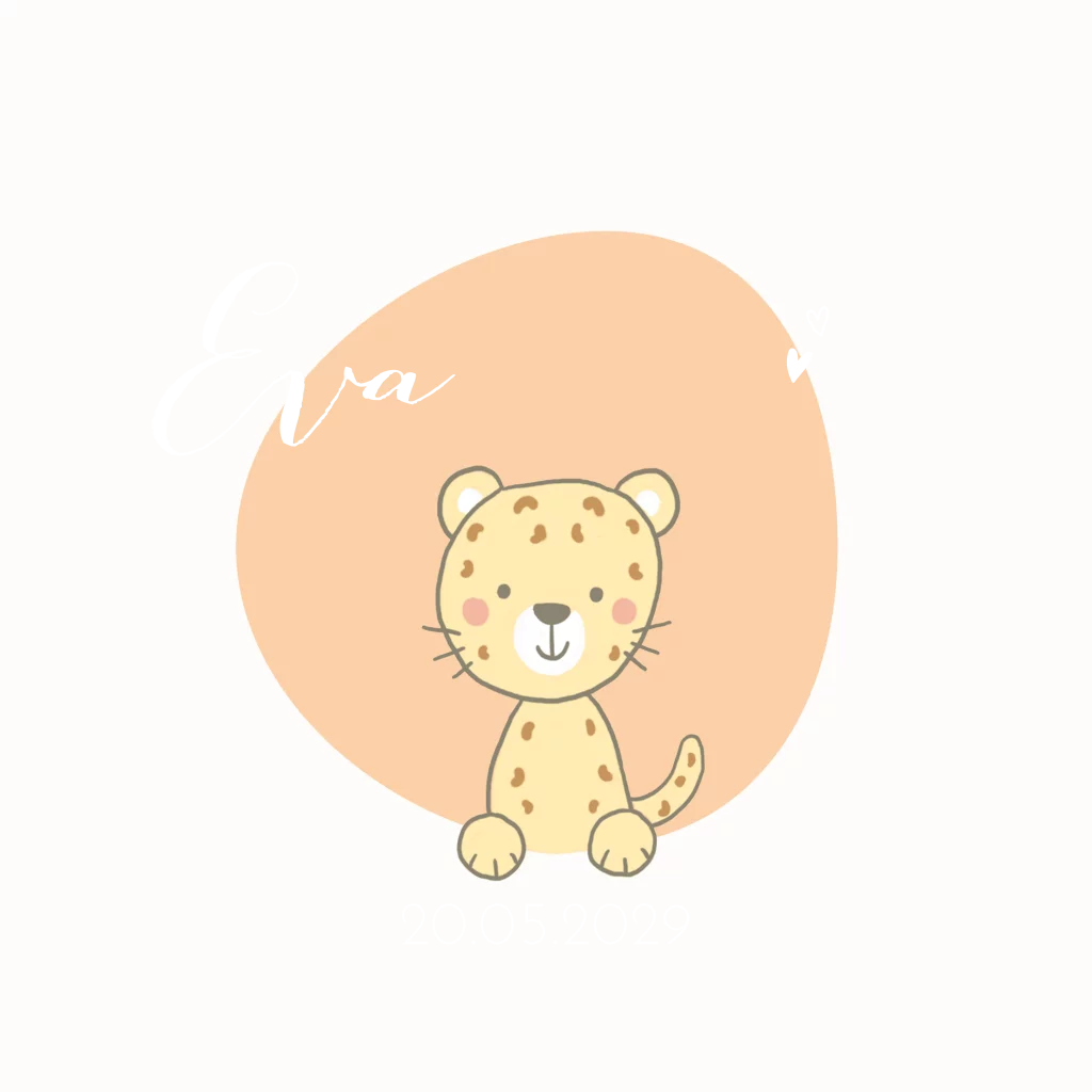 Lief geboortekaartje voor een meisje met getekend luipaard en foliedruk. (3916)