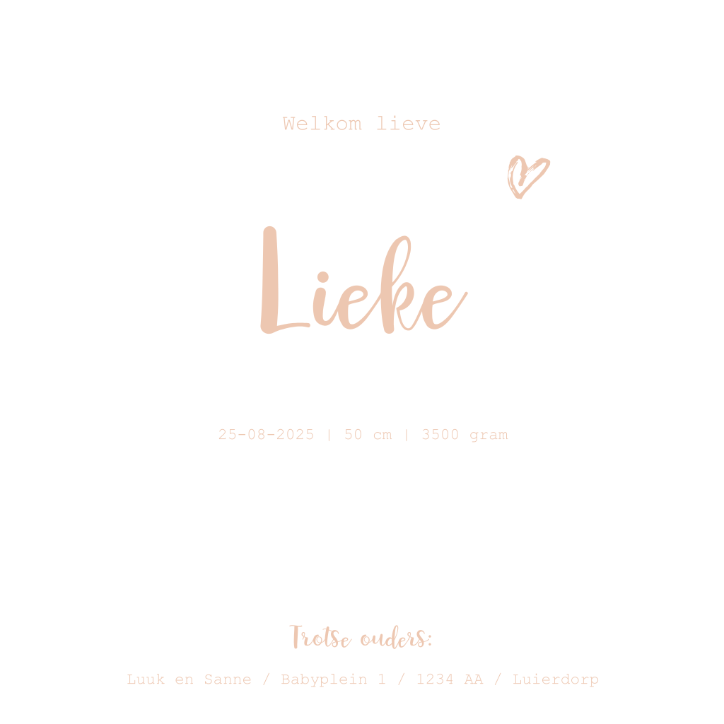 Meisjes rosegoudfolie geboortekaartje spetters roze