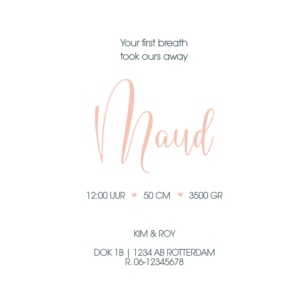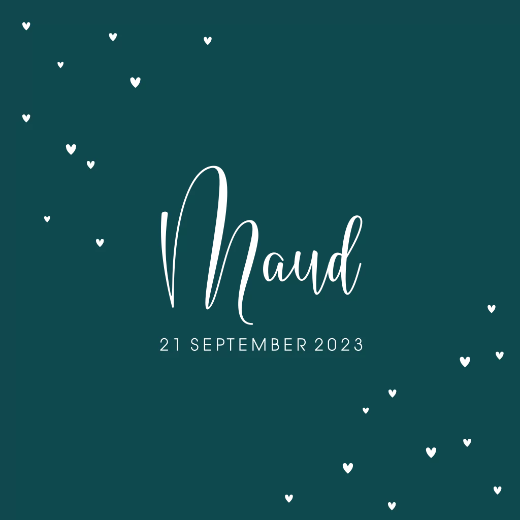 Rosefolie geboortekaartje meisje met hartjes en trendkleur groen