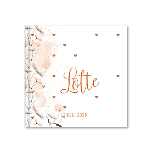 Kraamboek roze en goud met paardenbloem