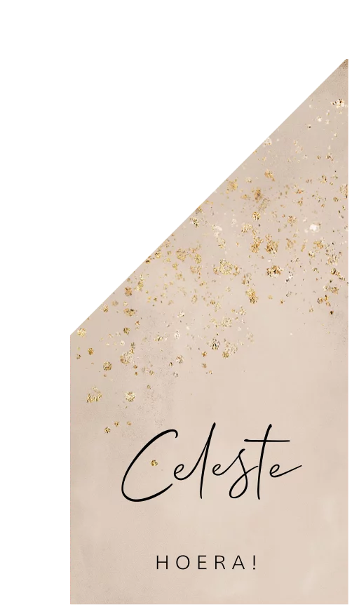 Geboorte kioskvlag beige goud look spetters. De kioskvlag wordt gemaakt van een stevig 610 g/m² pvc-materiaal en wordt dubbelzijdig bedrukt. We raden je aan om de vlag binnen te halen bij stevige wind, om beschadigingen te voorkomen.
