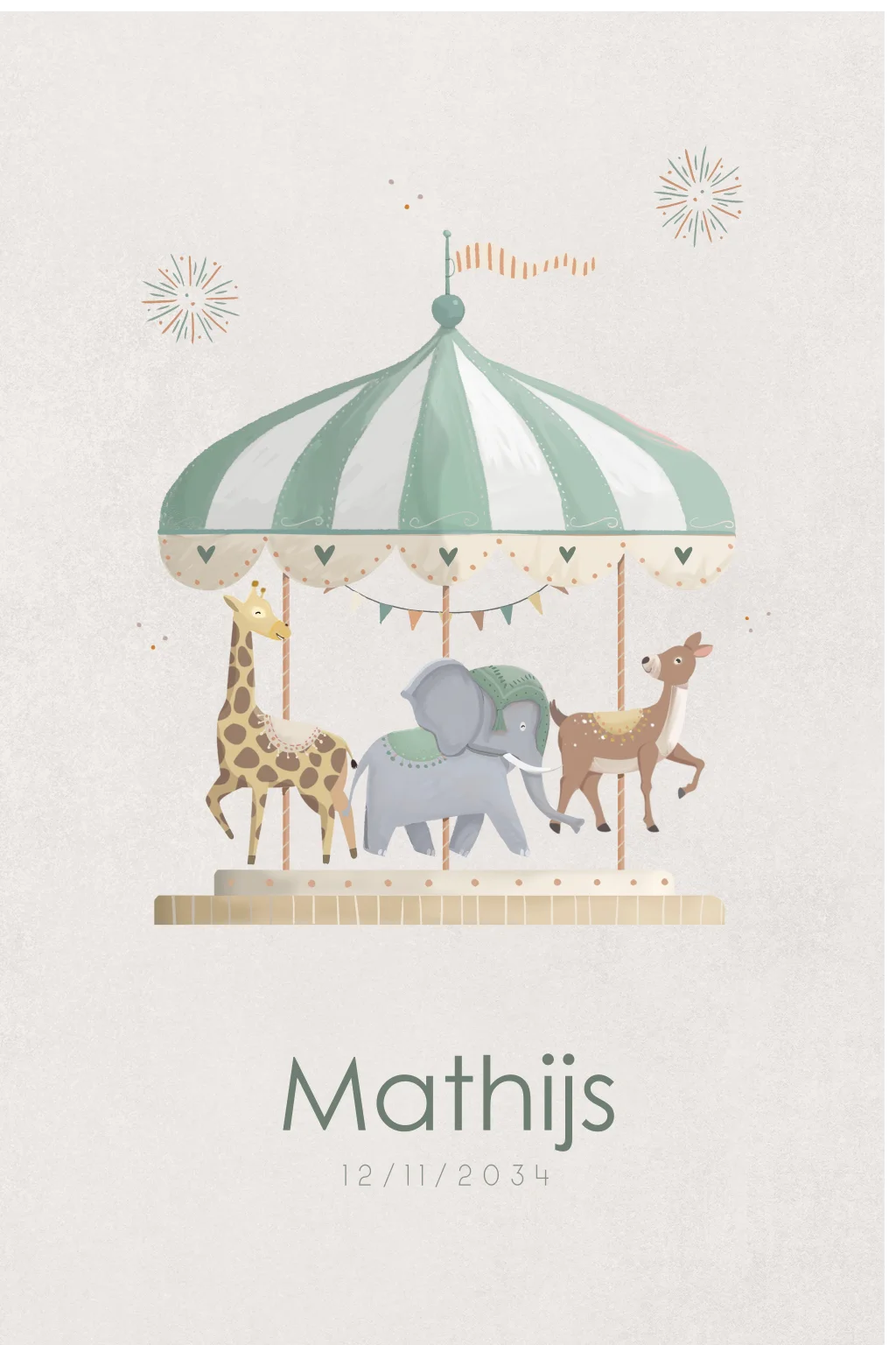Een beige raambord met een draaimolen voor een jongen. Bewerk naar wens in onze editor.