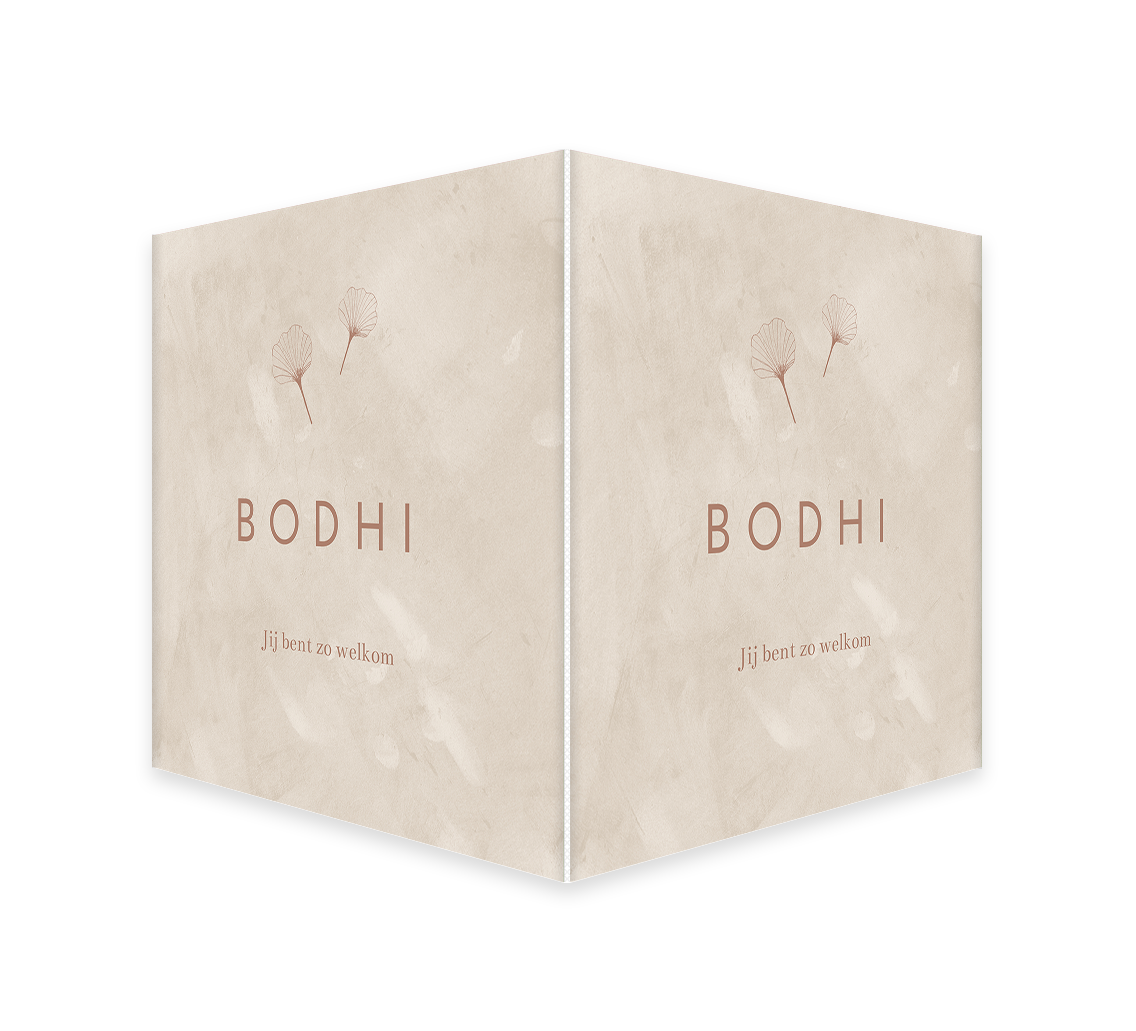 Geboorte raambord met ginkgo bladeren en een trendy beige achtergrond. (3754)