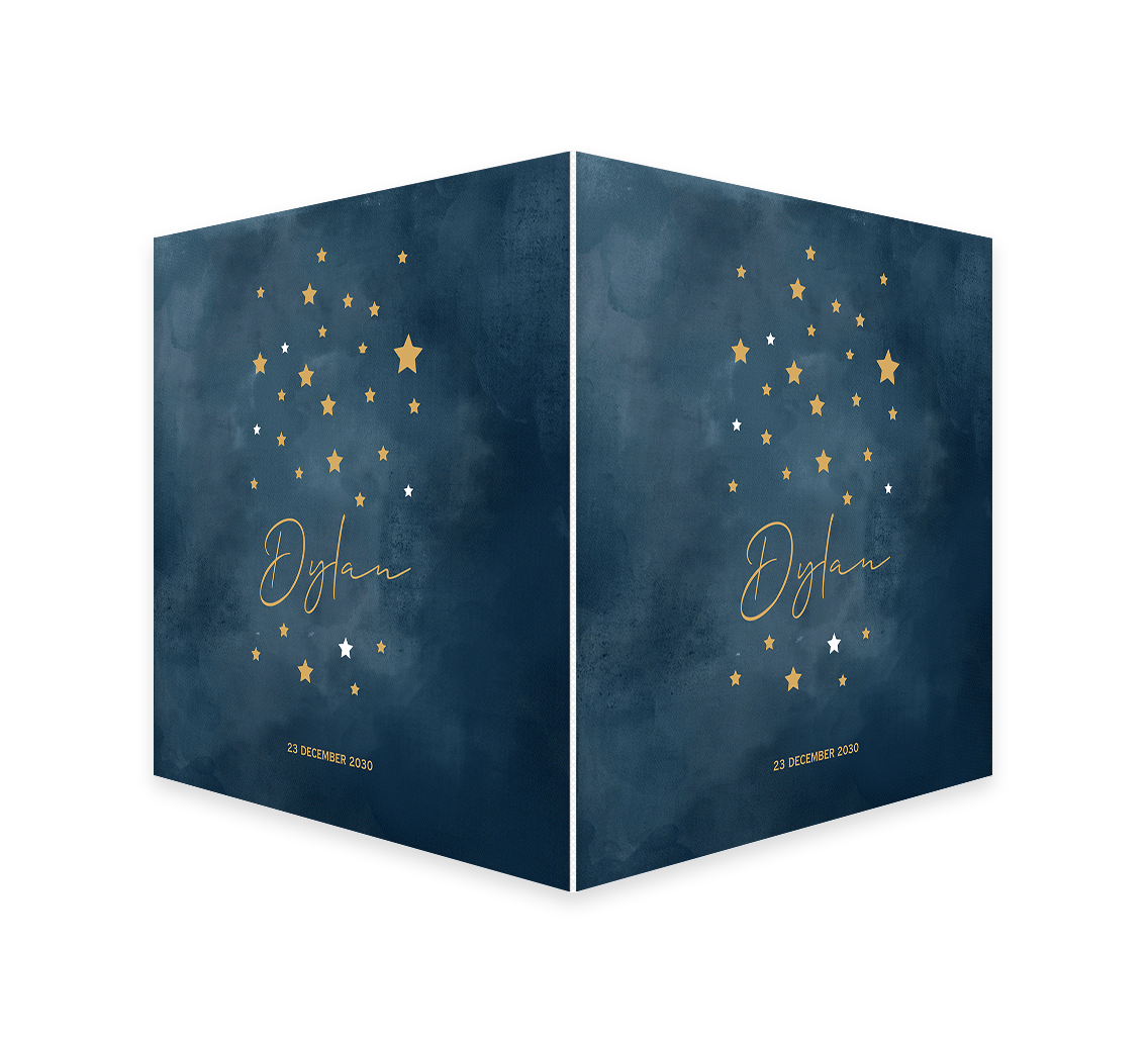 Geboorteborden donker blauwe achtergrond met sterretjes.