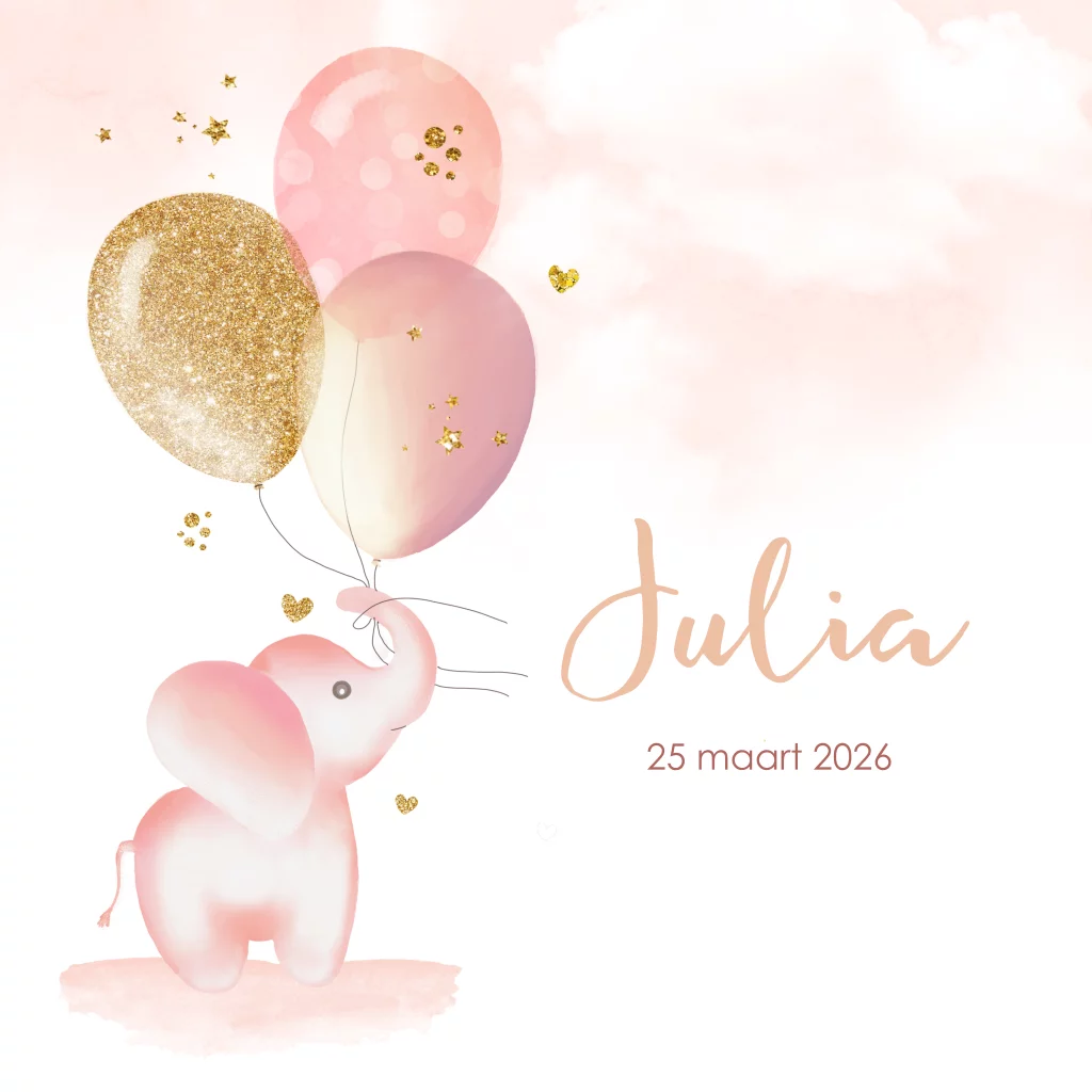 Geboorte bord voor in de tuin. Vierkant met een olifantje.