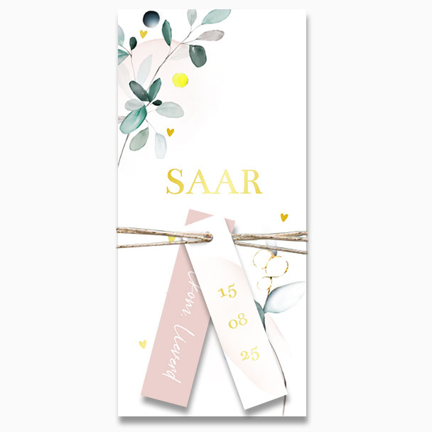 Of kies een ander item uit onze hippe collectie bevestigingsmaterialen en versieringen, zoals een velvet-lintje of een stoer touwtje en bestel het gewenste bevestigingsmateriaal los bij de kaart.