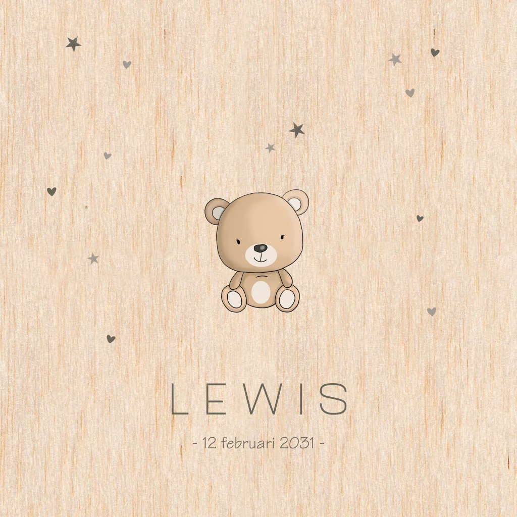 Geboortekaartje hout trendy met beer en sterretjes