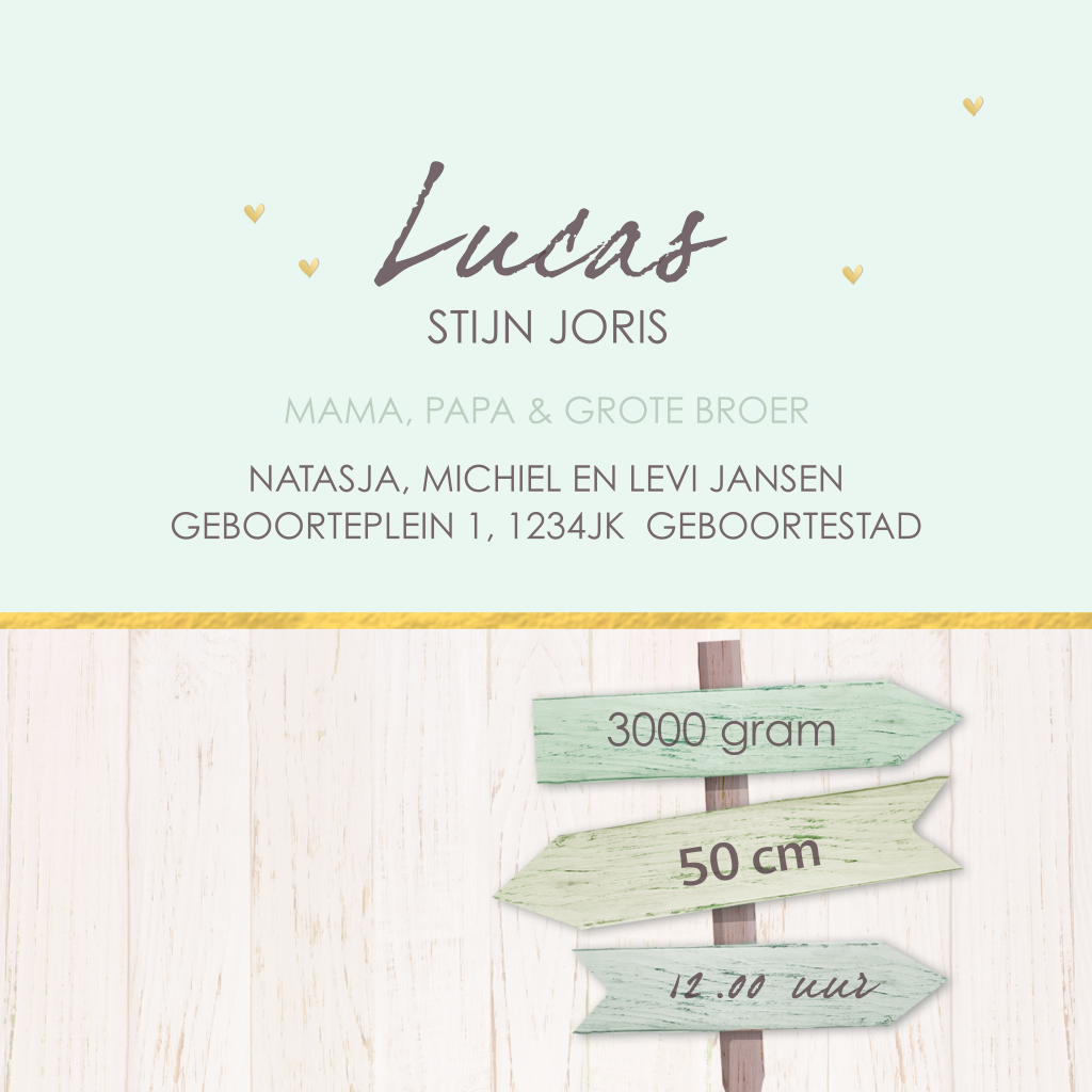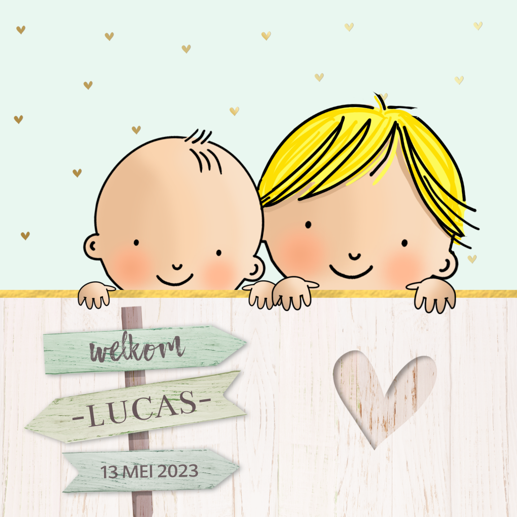 Geboortekaartje tweede kindje baby jongen met broertje sloophout. Ben je opzoek naar een andere gezinssamenstelling neem dan even contact op met onze klantenservice. We helpen je graag! (167)