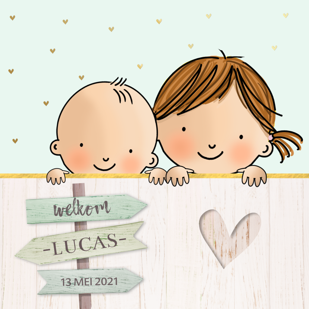 Geboortekaartje baby jongen met zusje sloophout