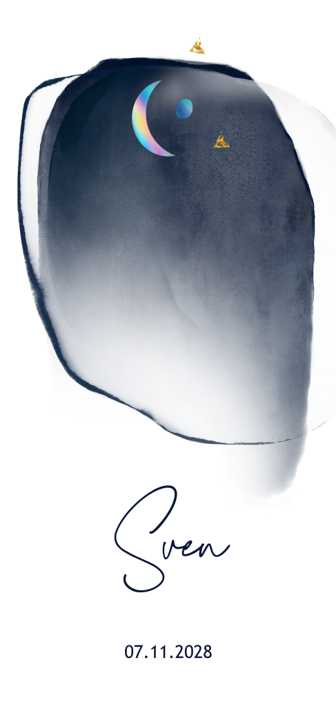 Abstract geboortekaartje voor een jongen. blauw met maan. (4400)