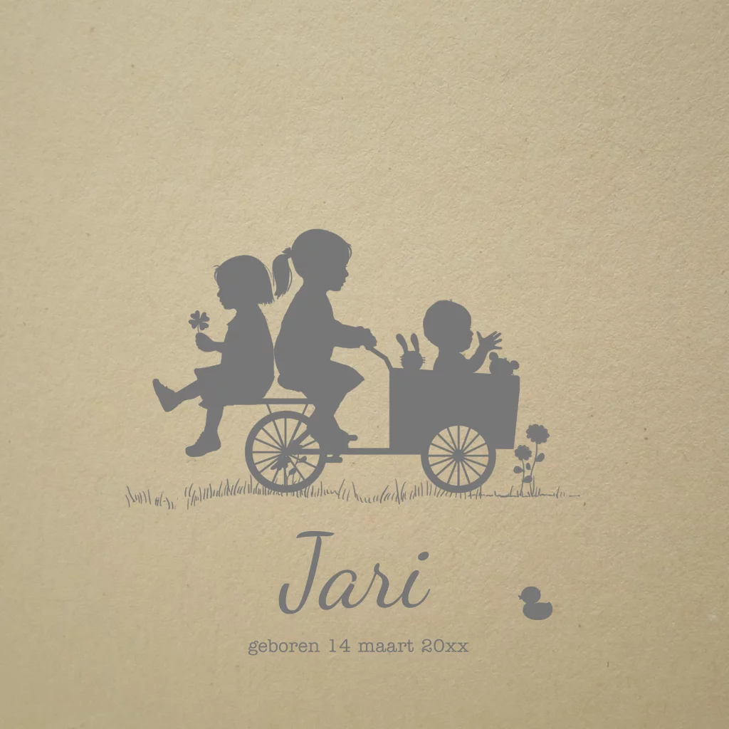 Bakfiets geboortekaartje 3 kindje zusjes met broertje