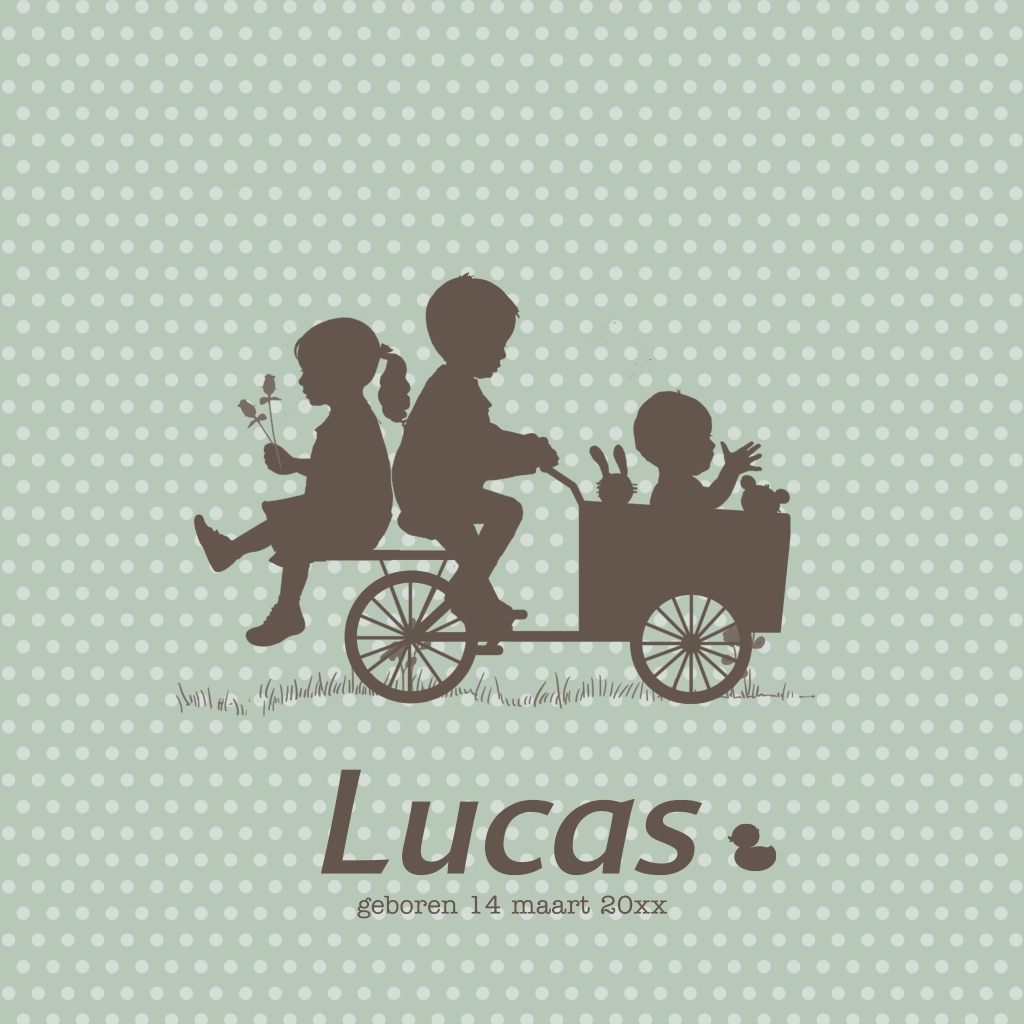 Bakfiets geboortekaartje 3e kindje jongen. (3373)