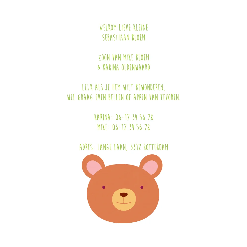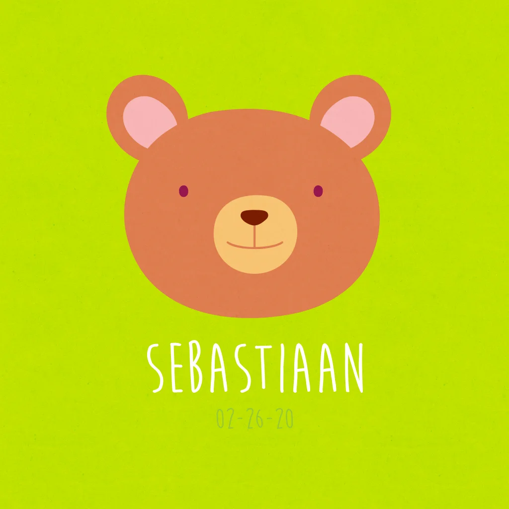 Beer dieren hoofdje groen geboortekaartje jongen. (3752) De achtergrondkleur is naar wens aan te passen.