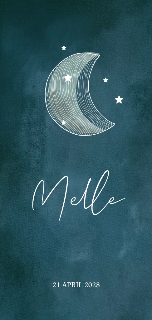 Blauw geboortekaartje jongen met maan en sterren