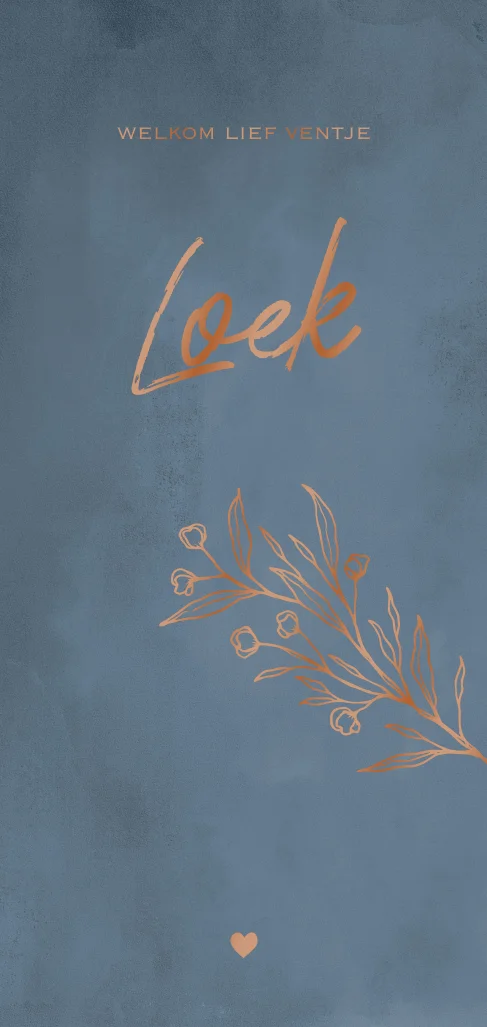 Blauw geboortekaartje voor een jongen met botanische tak.