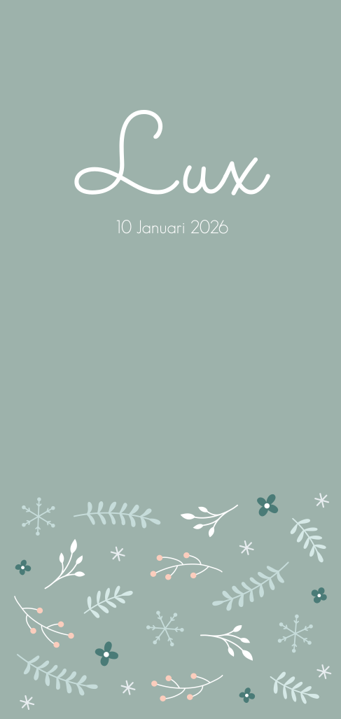 Botanisch geboortekaartje winter in zacht vergrijsd groen