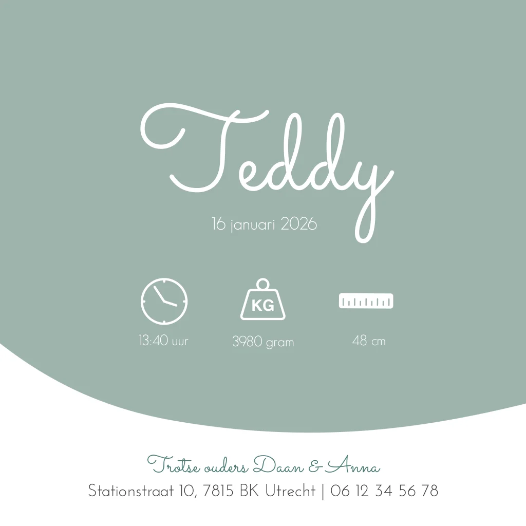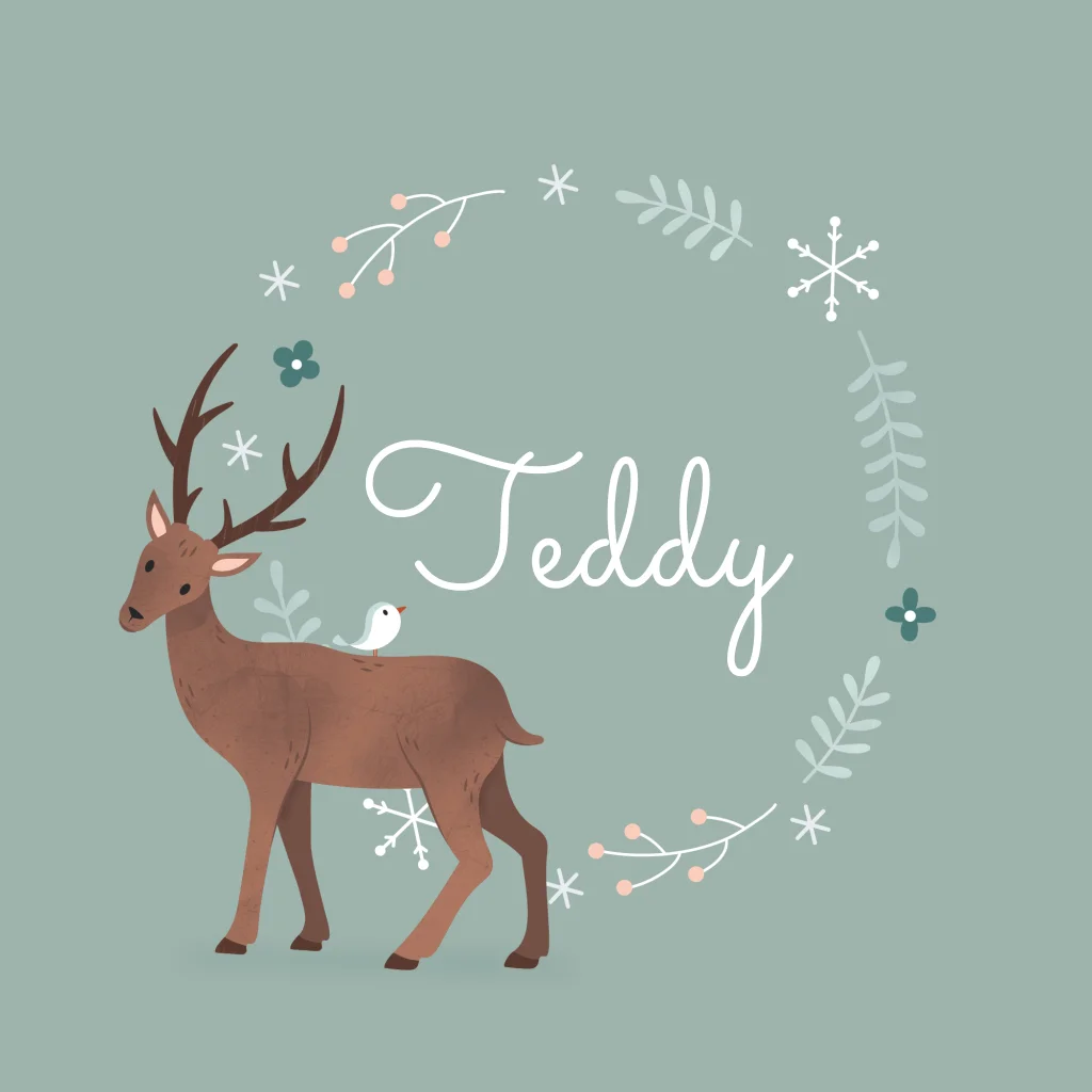Een lief winters geboortekaartje met botanische takjes en hertje. In zachte winterse kleuren voor een jongen of meisje. (4615)