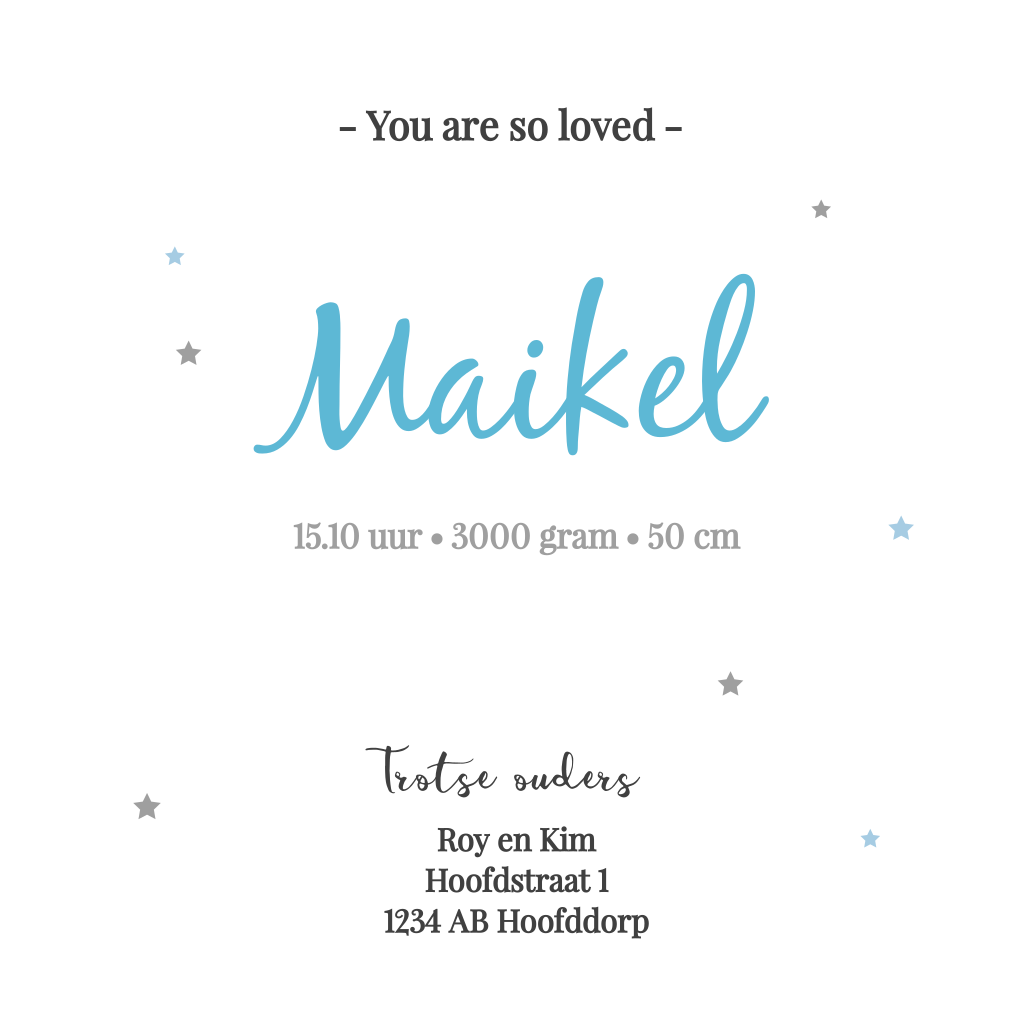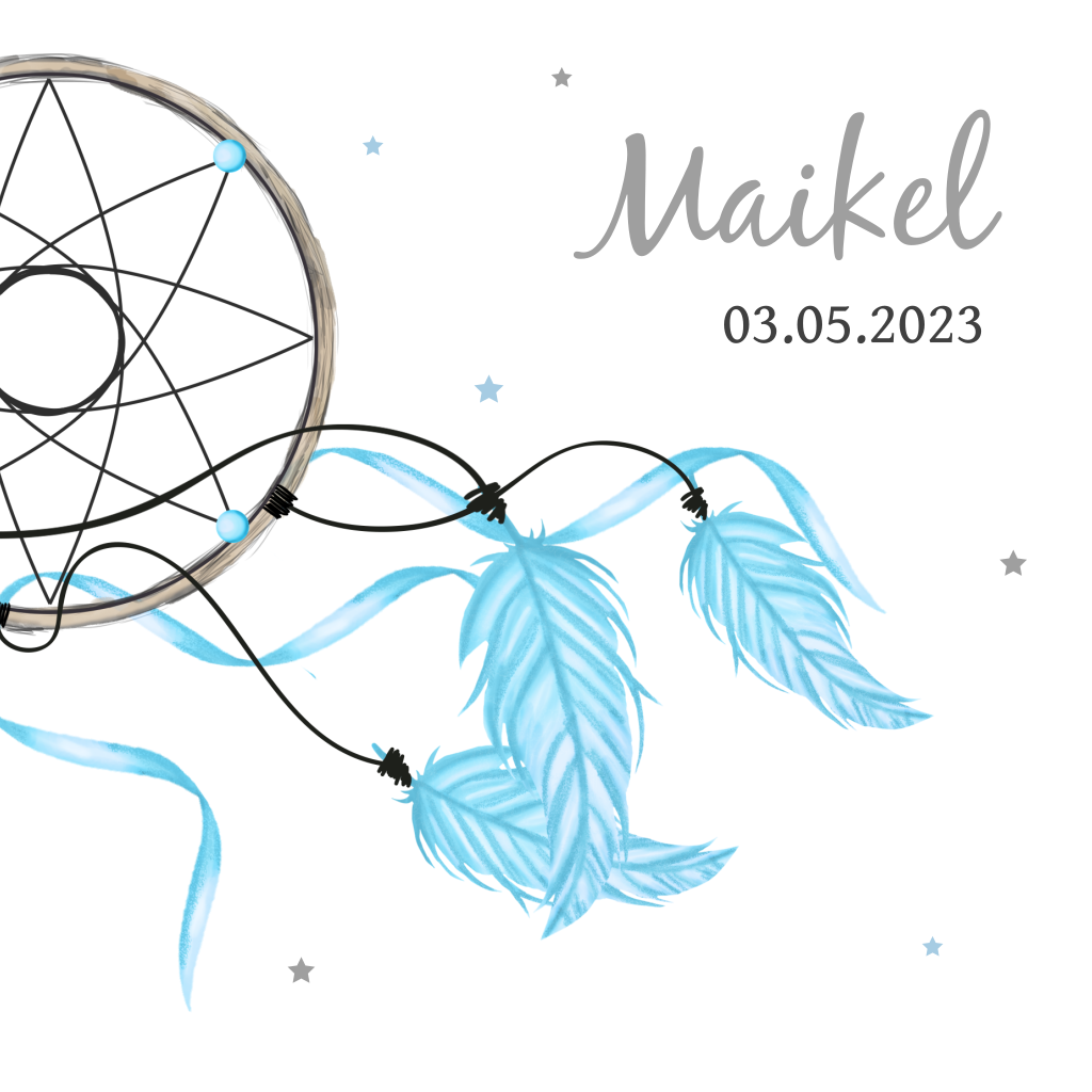 Stoer geboortekaartje voor jongen met blauwe dromenvanger