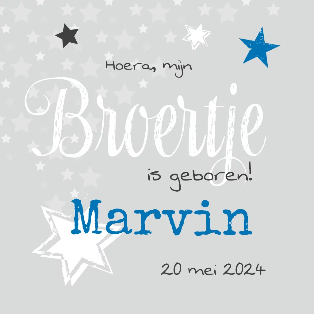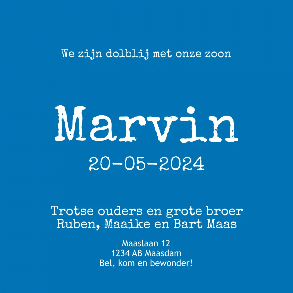 Hoera! Binnenkort wordt het broertje van jouw kind(eren) geboren. Dit moderne geboortekaartje is hier speciaal voor geschikt. De binnenkant is lekker blauw gekleurd.
