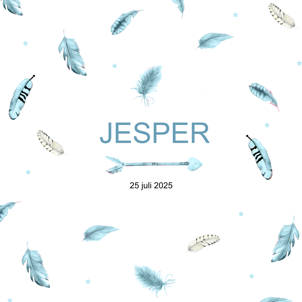 Geboorte voor een jongen met lieve veertjes en pijltje in aquarel. (3223)