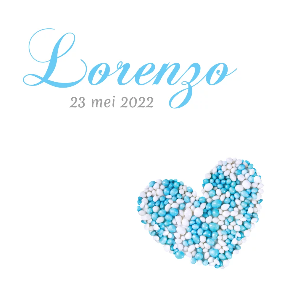 Klassiek geboortekaartje met hartje voor jongen